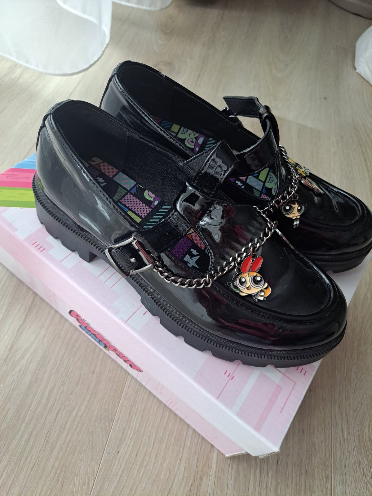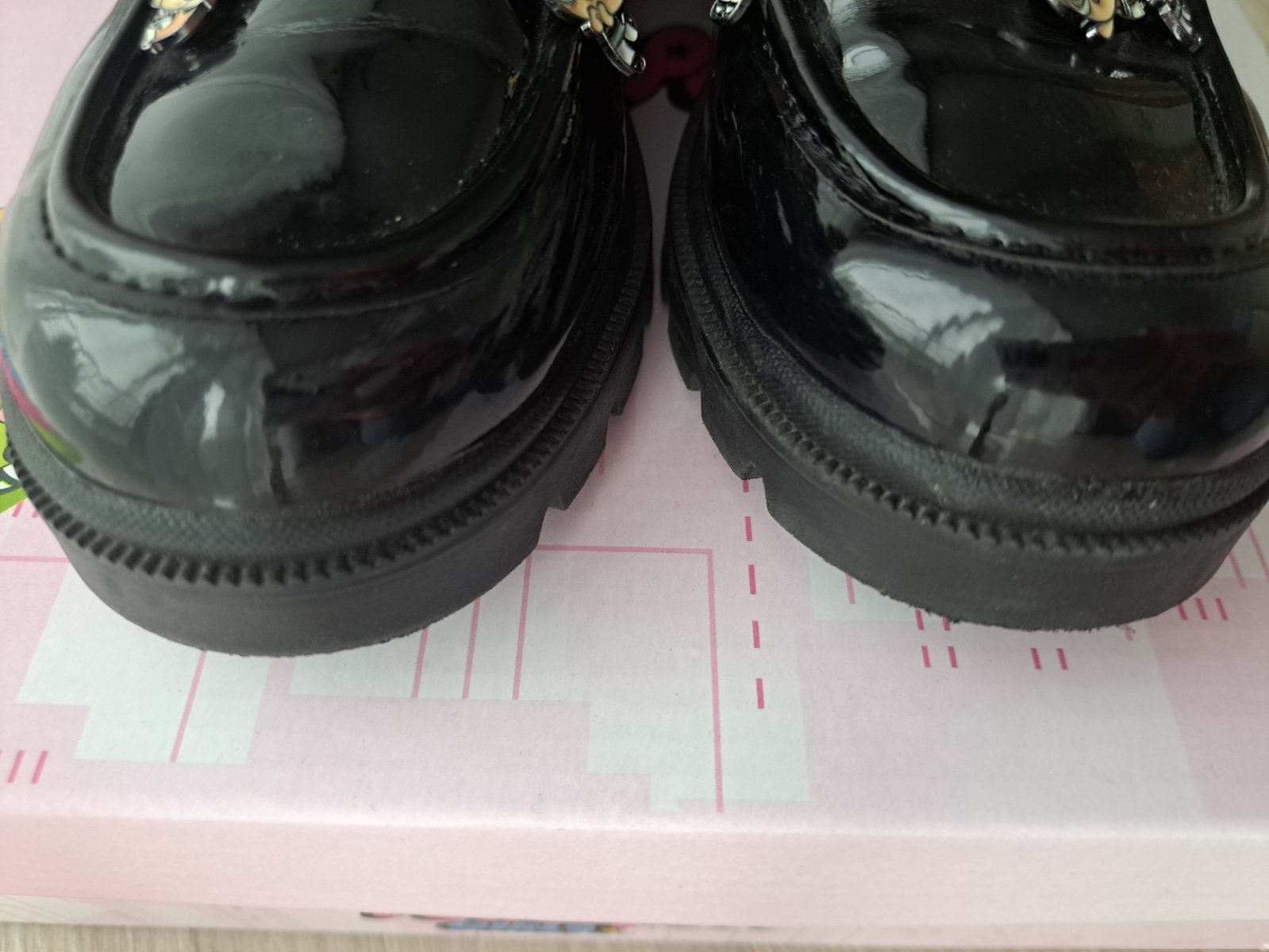 Dievčenské topánky veľ.35. Vnútorná dĺžka je 23 cm. Topánky mala dcéra raz na svadbe. Vydržala v nich celú noc, boli kúpené v novembri a v jari už boli malé. Špičky sú neokopané, akurát z vnútornej strany trochu lak ošúchaný. Ale snáď urobia ešte niekomu radosť.