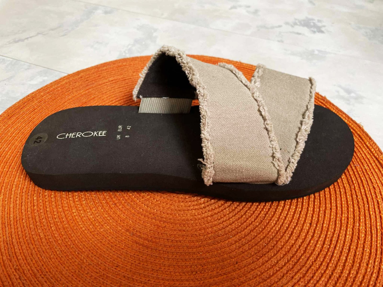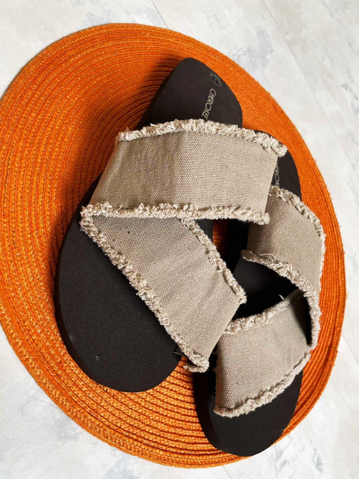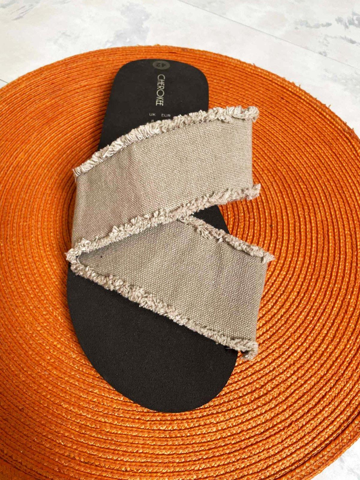 ľahúčke,kvalitné a zaujímavé unisex vintage šlapky,s komfortnou pružnou podrážkou,značka Cherokee,na boku gumičky aby sa prispôsobili obvodu a nartu,vn. dlžka = 28 cm,krásne sedia na nohe tým,že neodstávajú a pekne obopnú nohu podľa potreby - perfektný vzor,látkový materiál - ostranbaný kepper