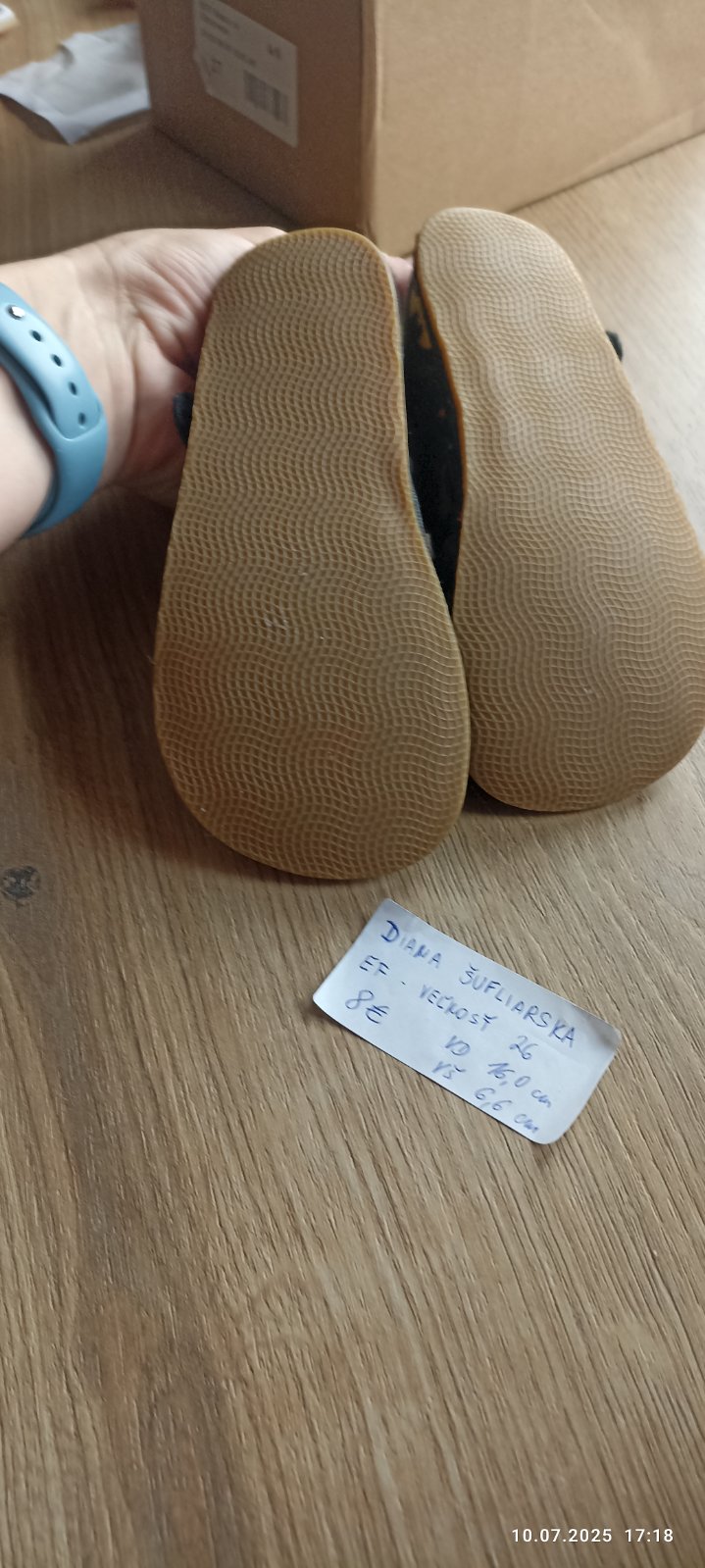 Kozene balerinky v.26, suchnute spicky, osetrene, takze to nie je take viditelne. VD 16,3 cm meradlom plus 12, sirka namerana 6,5 cm. K cene treba priratat postu alebo packetu. Osobny odber v BA Vr...