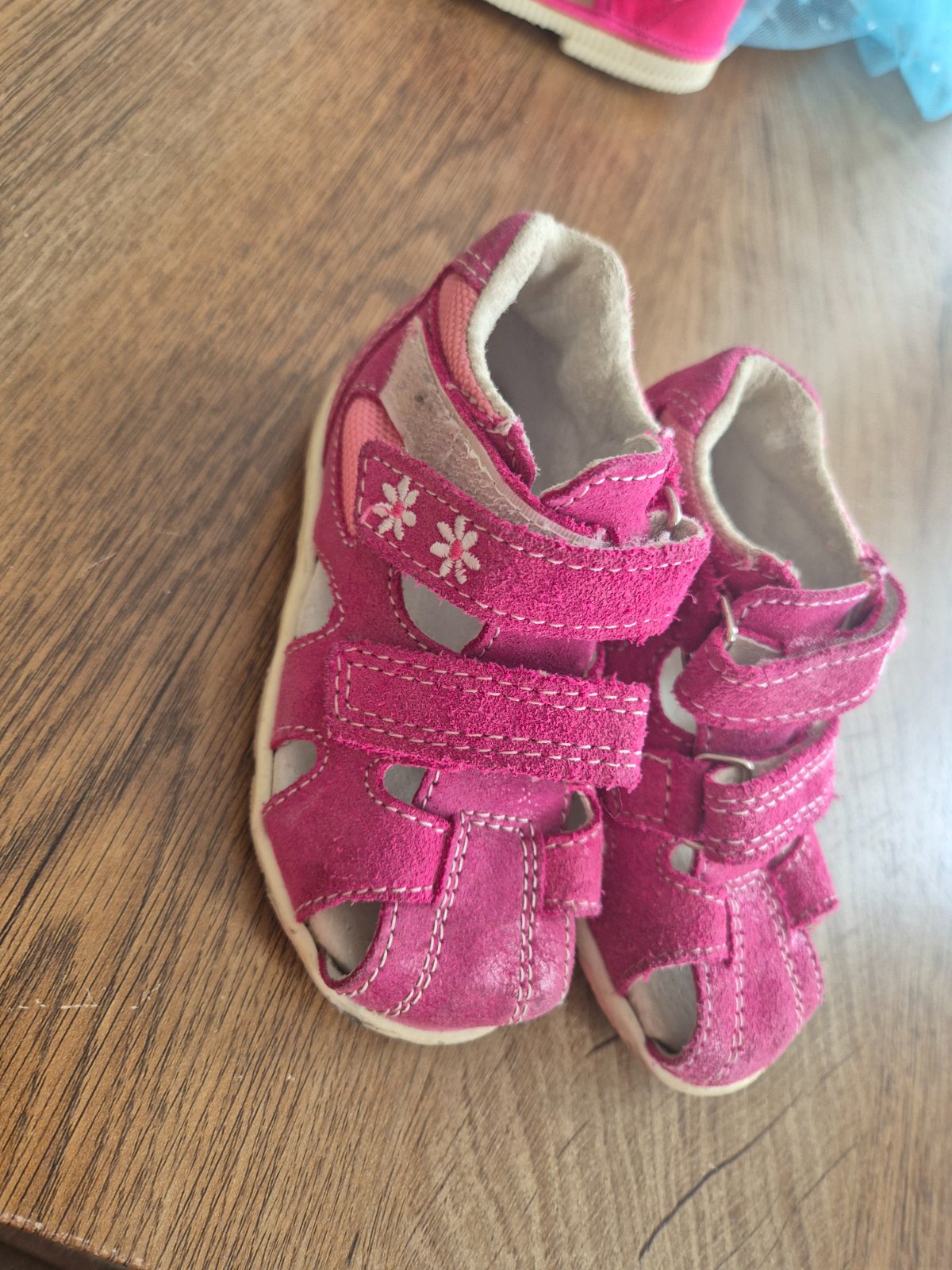 Krásne sandále, celokožené, PC 48 eur. Dcéra nechce papuče, tak som skúsila sandále, ale tiež ich nechcela nosiť, boli obuté v byte 3x. VD 14.7 CM. Farba ako na fotke, taká staro-ruzova, sú jemné t...