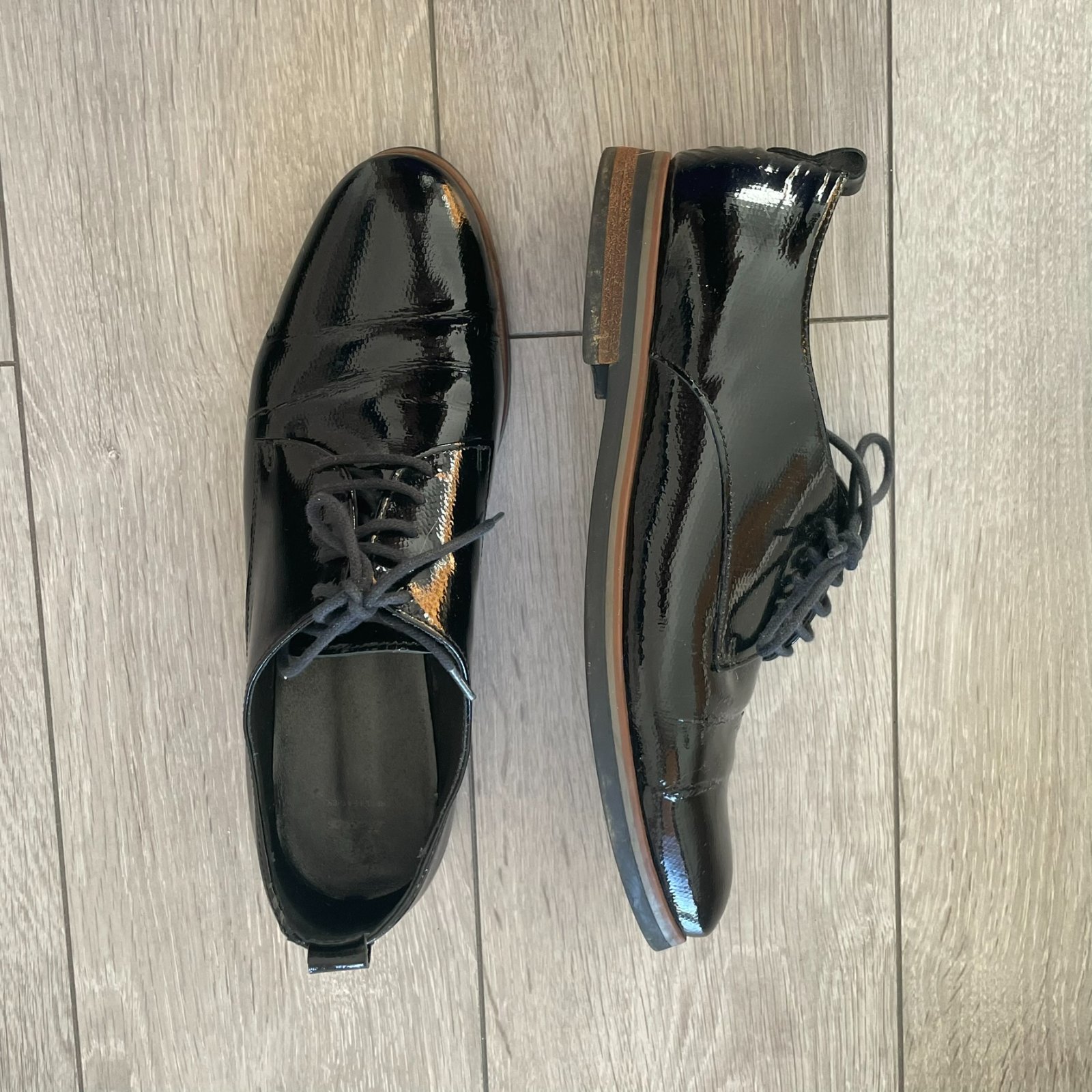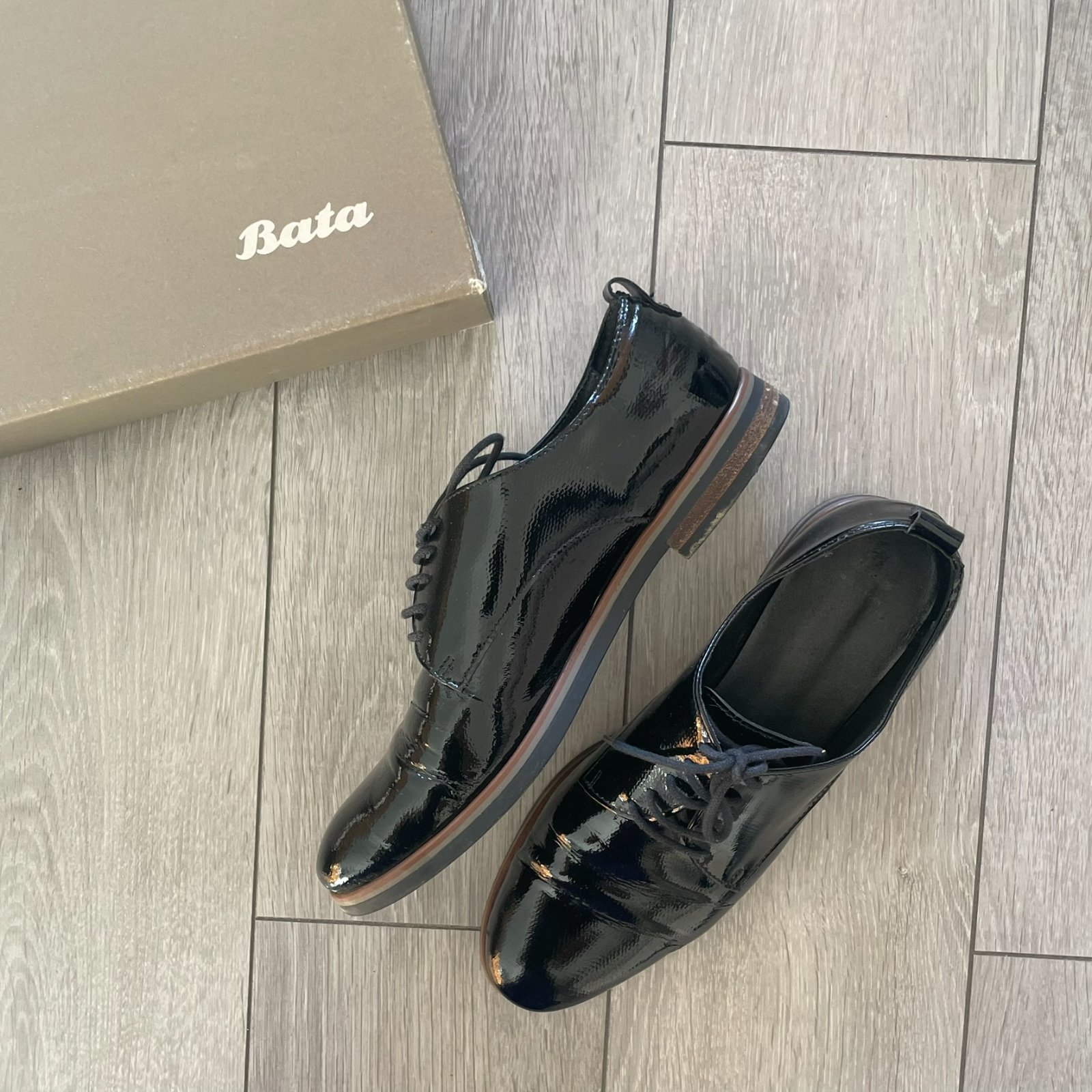 Čierne lesklé poltopánky/mokasíny značky Baťa.