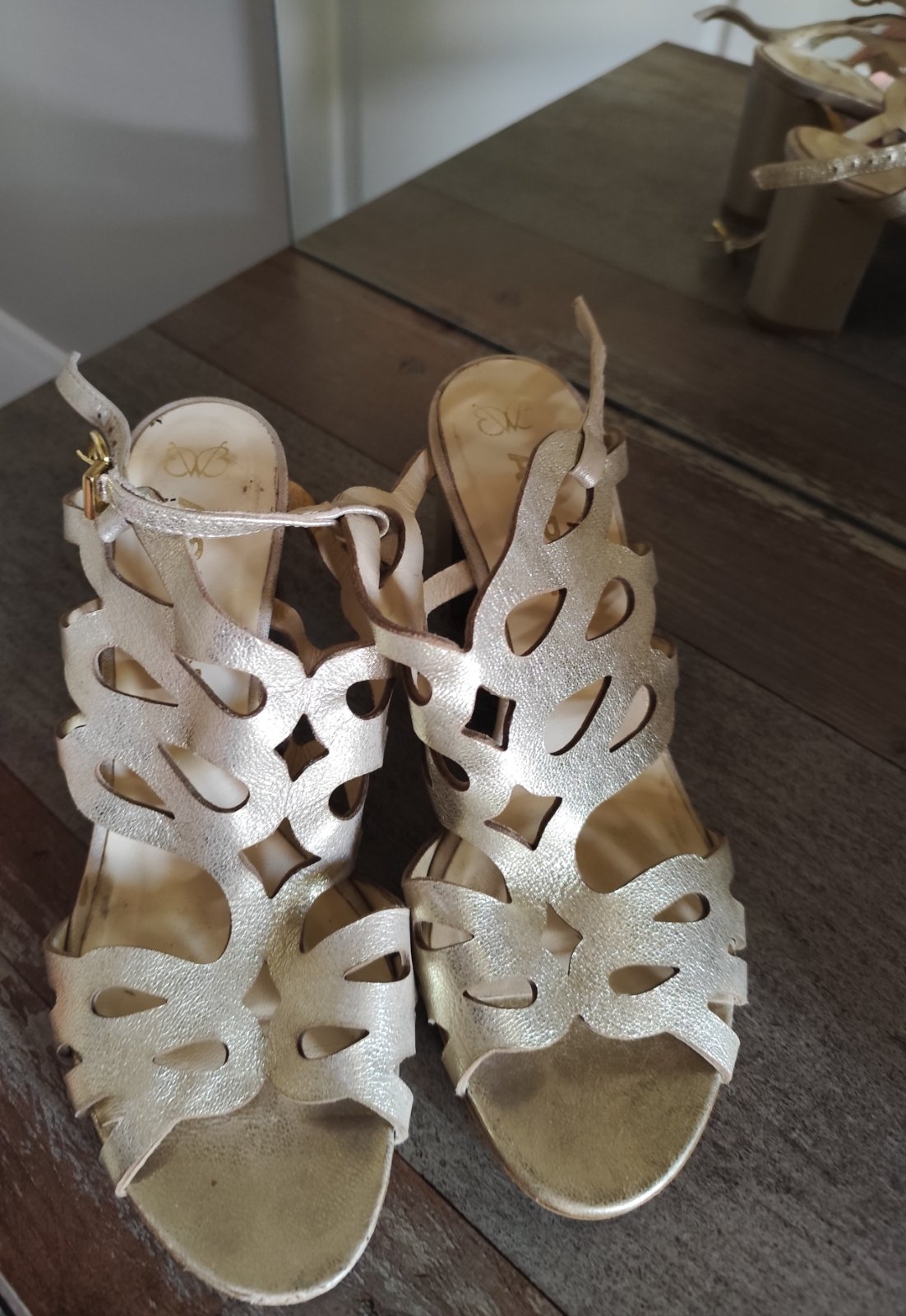Predam bohuzial nevyuzite. Neboli ani raz obute,len skusane. Velkost 37.su velmi pekne na nohe,elegantne,smrncovne. Vyska podpatku cca 6cm. NOVÉ