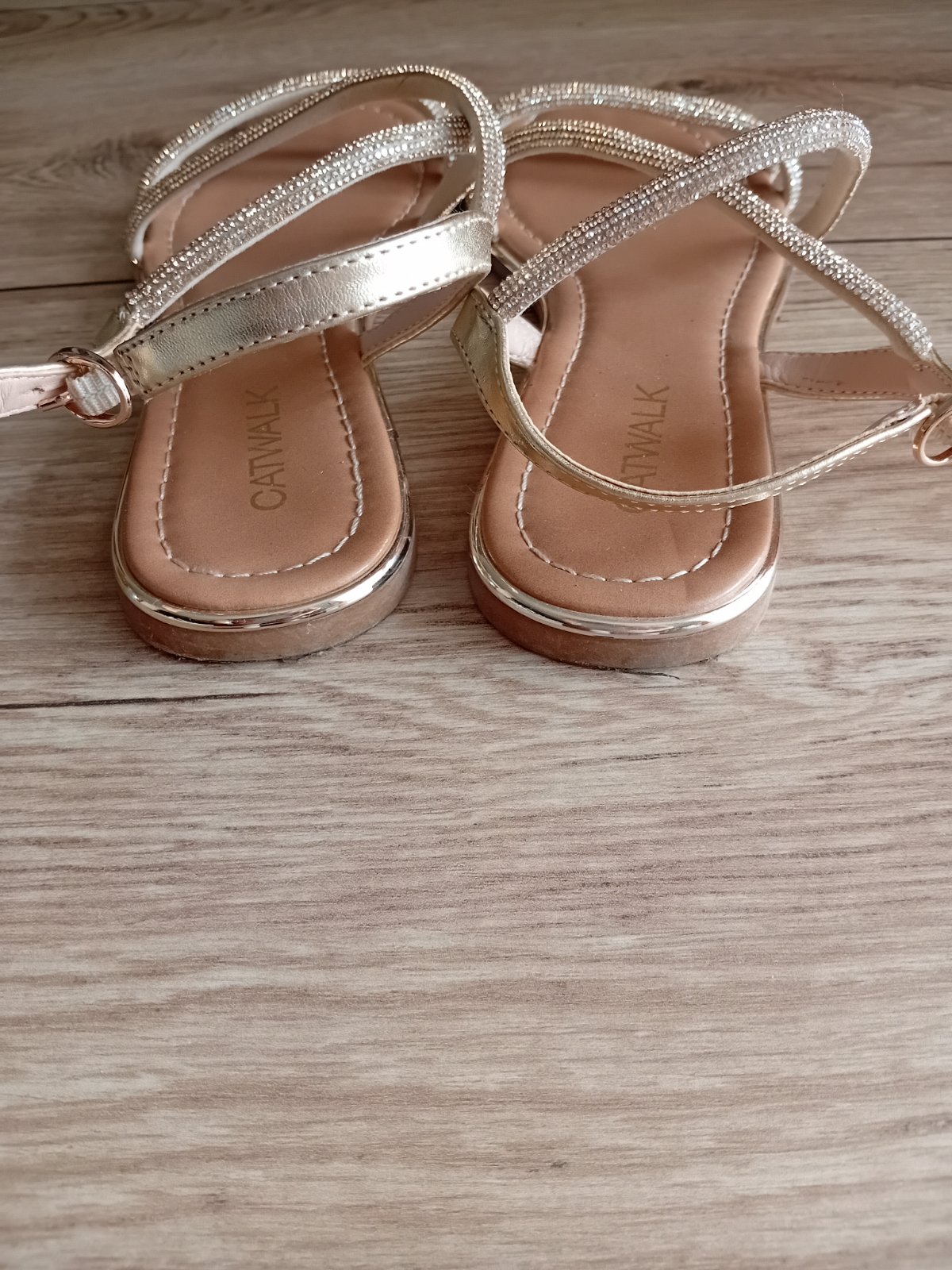 Veľmi pekné sandalky vôbec nezničené,obuté 2x. Nie sú okopané ani ošúchané. Cena 9+4 pošta