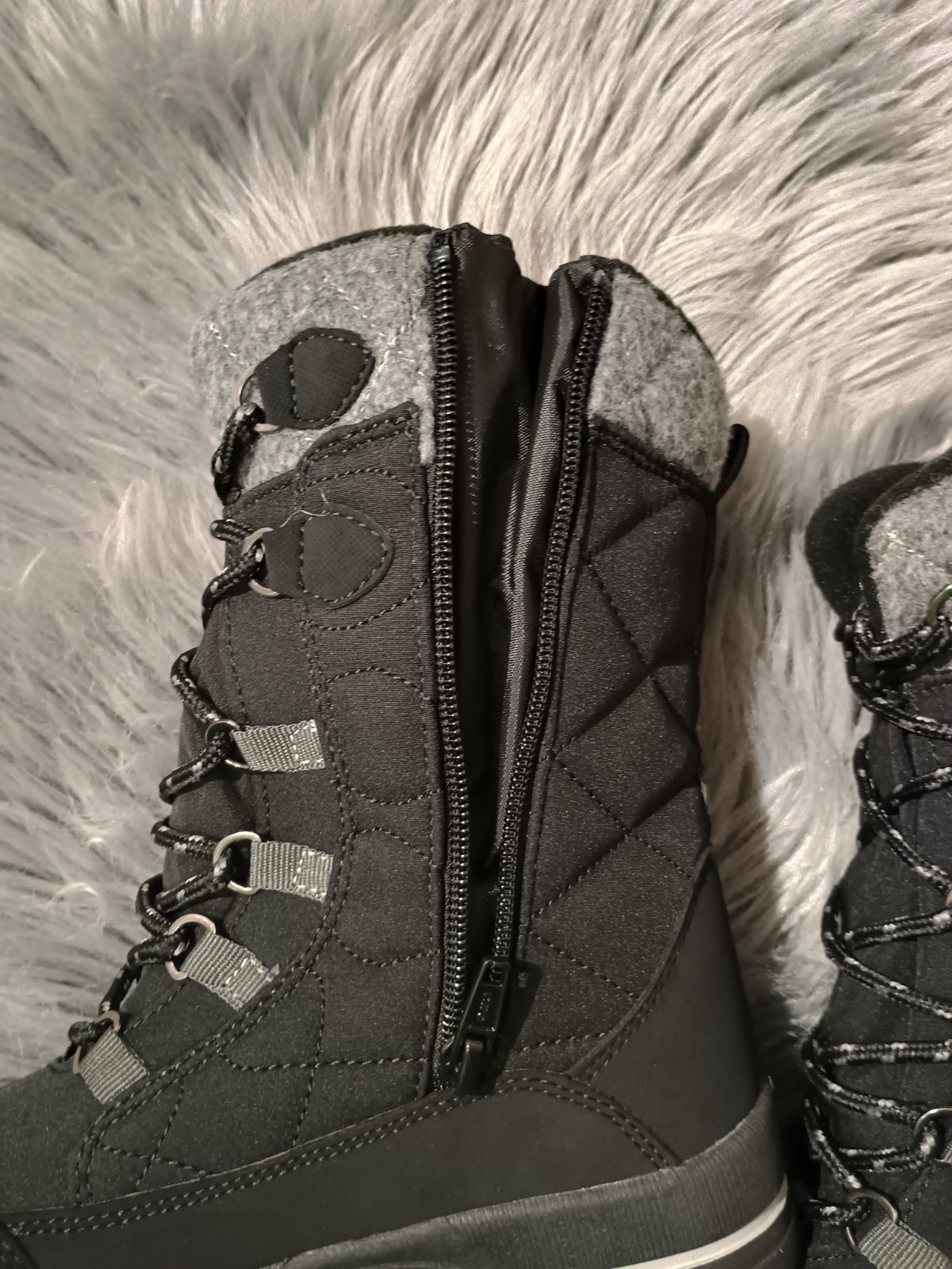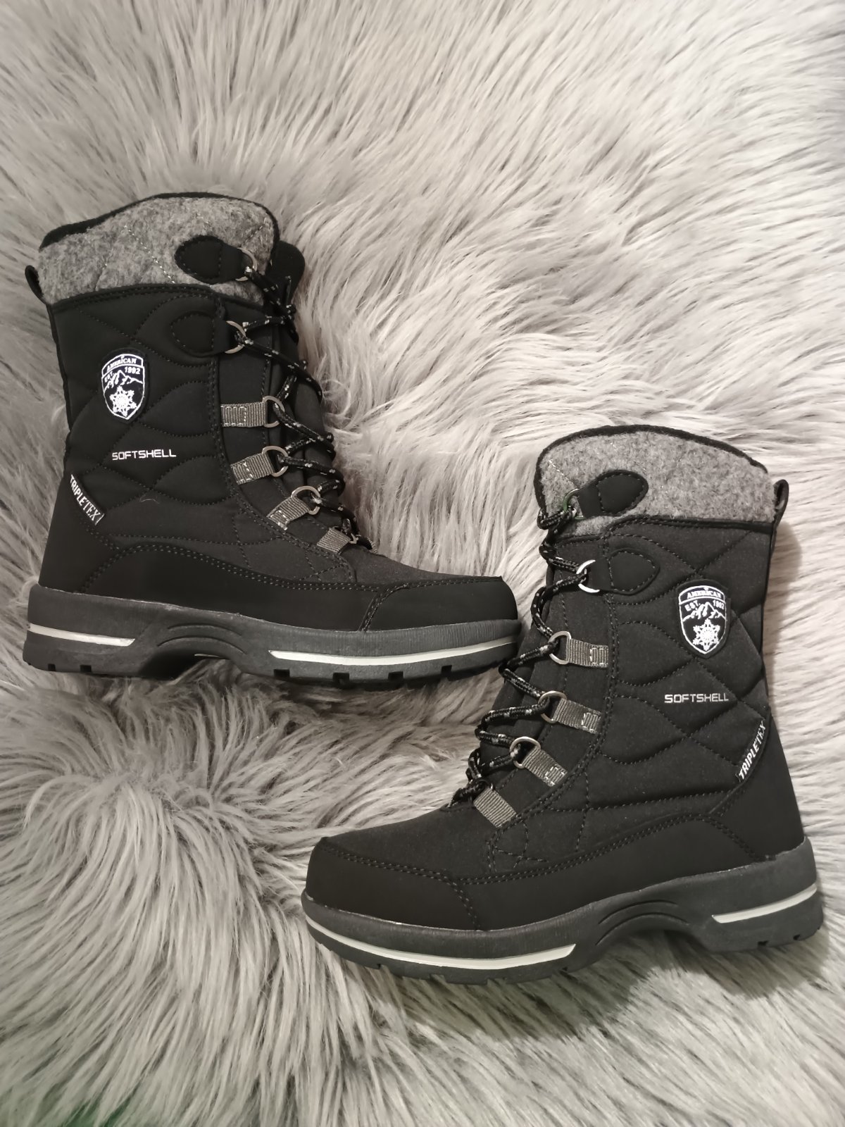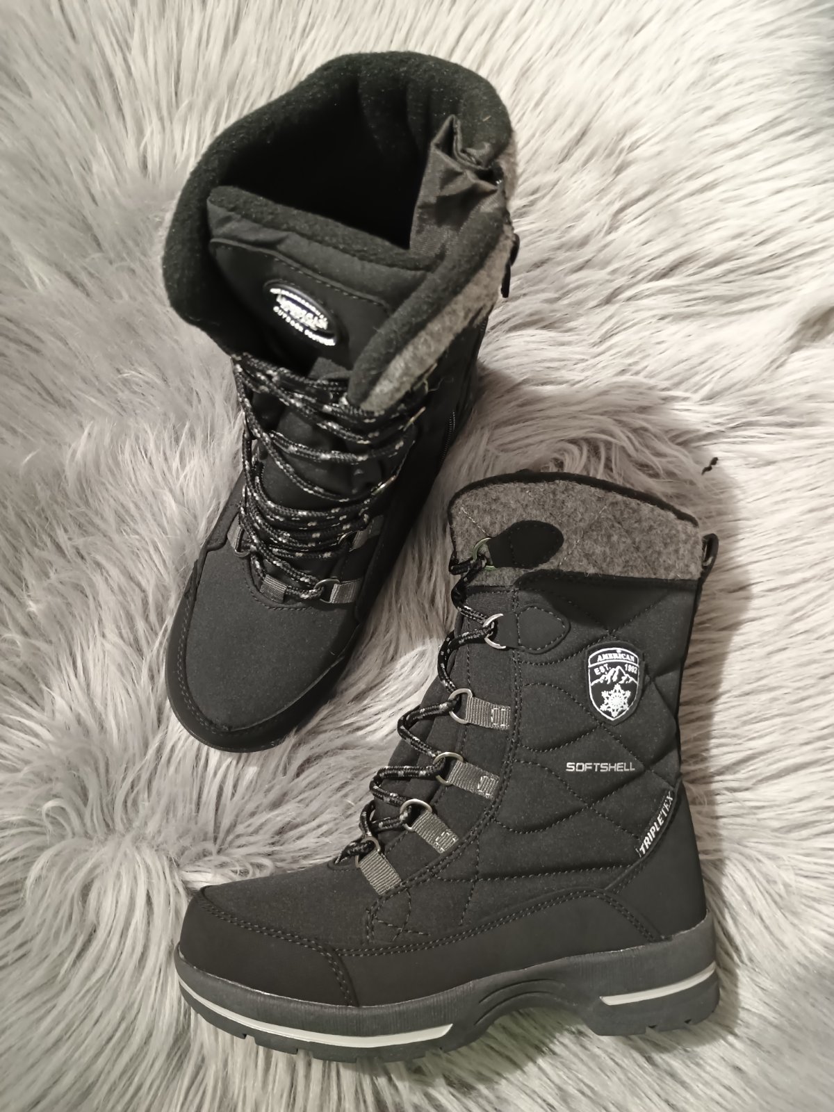 Vnútro topánky zateplené mäkkým fleecom. Snehule American Club majú zapnutie na zips, takže sa pohodlne obliekajú. Okrem toho je použité pevné šnurovanie, ktoré umožňuje dokonalé prispôsobenie zvršku nohe, aby do stredu topánky nespadol chlad alebo sneh. Dobré prispôsobenie tiež stabilizuje nohu, čím sa znižuje riziko zranenia. Hrubá protišmyková podrážka poskytuje dobrú priľnavosť k podkladu, skvelú izoláciu a stabilitu chôdze.