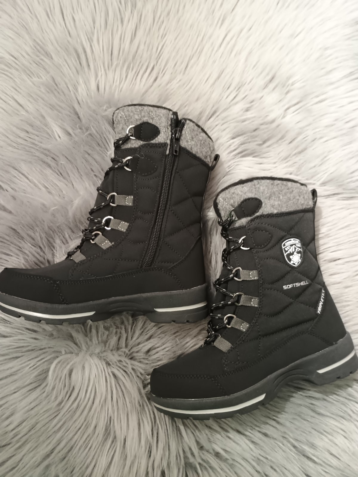 Zvršok detských snehul bol vyrobený s použitím technologicky vyspelého materiálu SOFTSHELL a membrány TRIPLETEX. SOFTSHELL tvoria špeciálne vybrané vrstvy, ktoré v kombinácii zvyšujú ochranu pred vetrom a dažďom a zároveň zabezpečujú správne vetranie vo vnútri topánky. Vonkajšie vrstvy SOFTSEHELL poskytujú vetuvzdornosť a vyššiu odolnosť voči vode, zatiaľ čo jej vnútorné vrstvy umožňujú udržiavať primeranú úroveň tepla vo vnútri obuvi. Membrána Triple-Tex pomáha udržiavať pohodlné podmienky používania, o. i. vďaka pokročilým vlastnostiam odvod vlhkosti. Celok má priedušné vlastnosti a je tiež mäkký, ľahký a pružný, vďaka čomu poskytuje vysoký komfort.