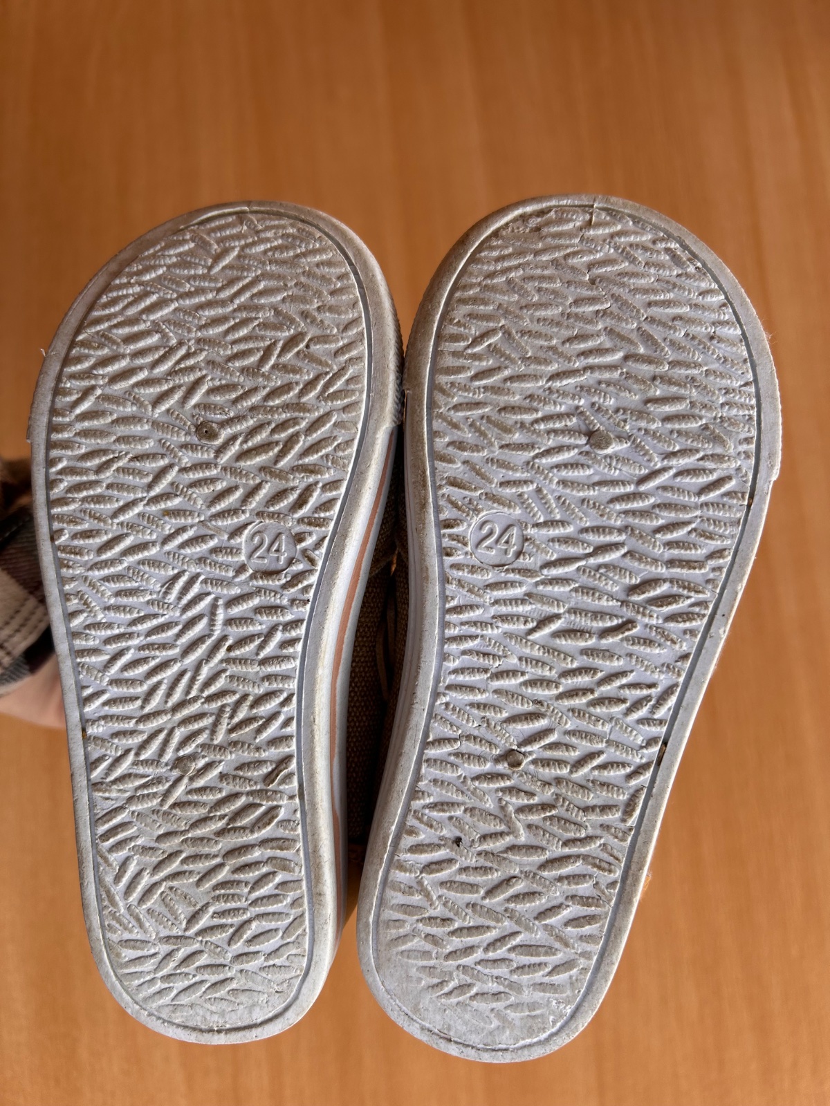 Pohodlné tenisky vo veľmi dobrom stave, kupované na konci leta. Pár krát sme ich mali obuté vonku, potom sme ich sporadicky využívali ako papučky.