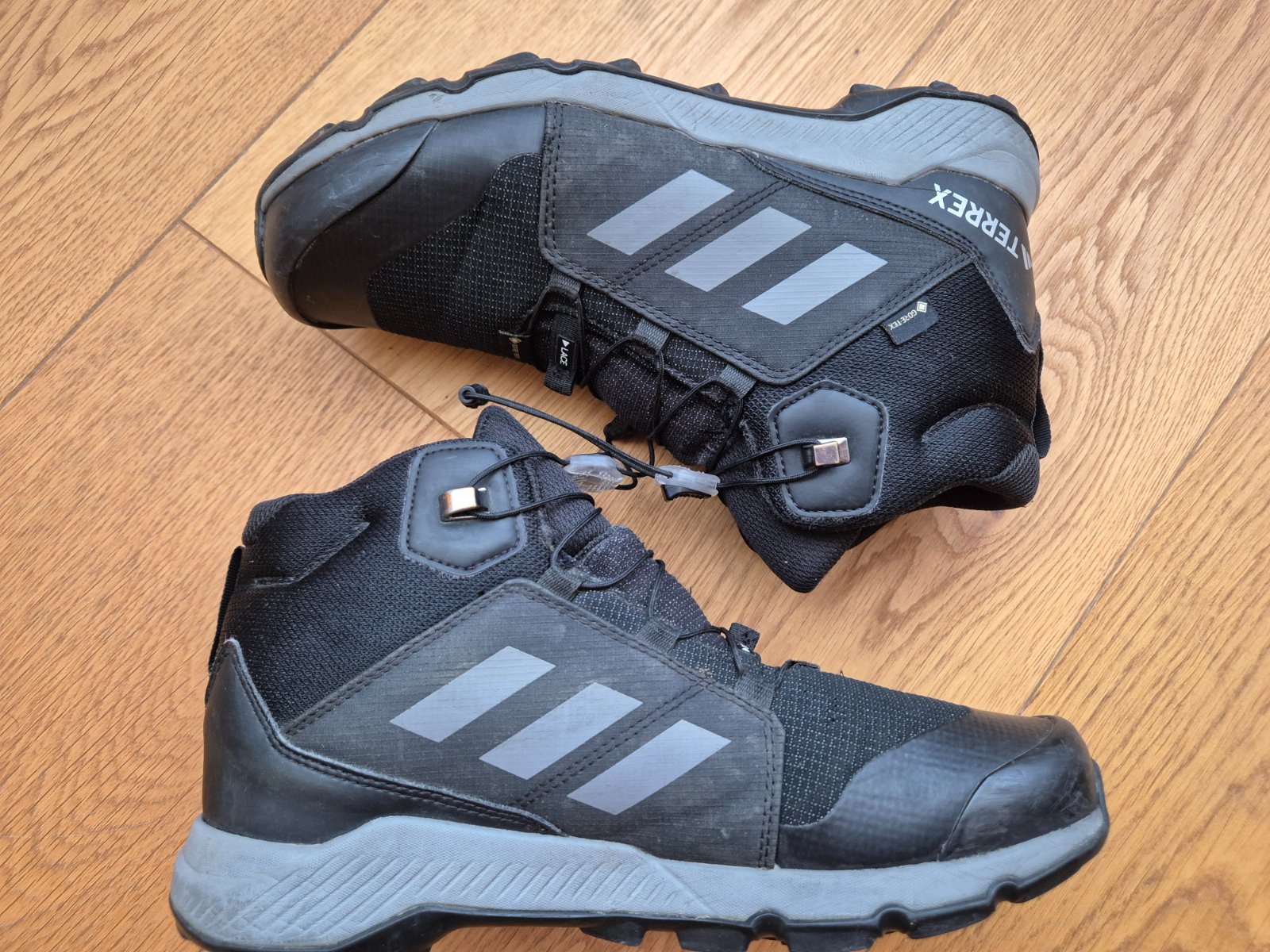Nosené príležitostne.nosenie vidno na gume,na niektorých častiach mierne šuchnutá.gore tex.Velkosť US 6,UK 5 1/2, F 38 2/3.Sú ešte v záruke viď doklad o kúpe.