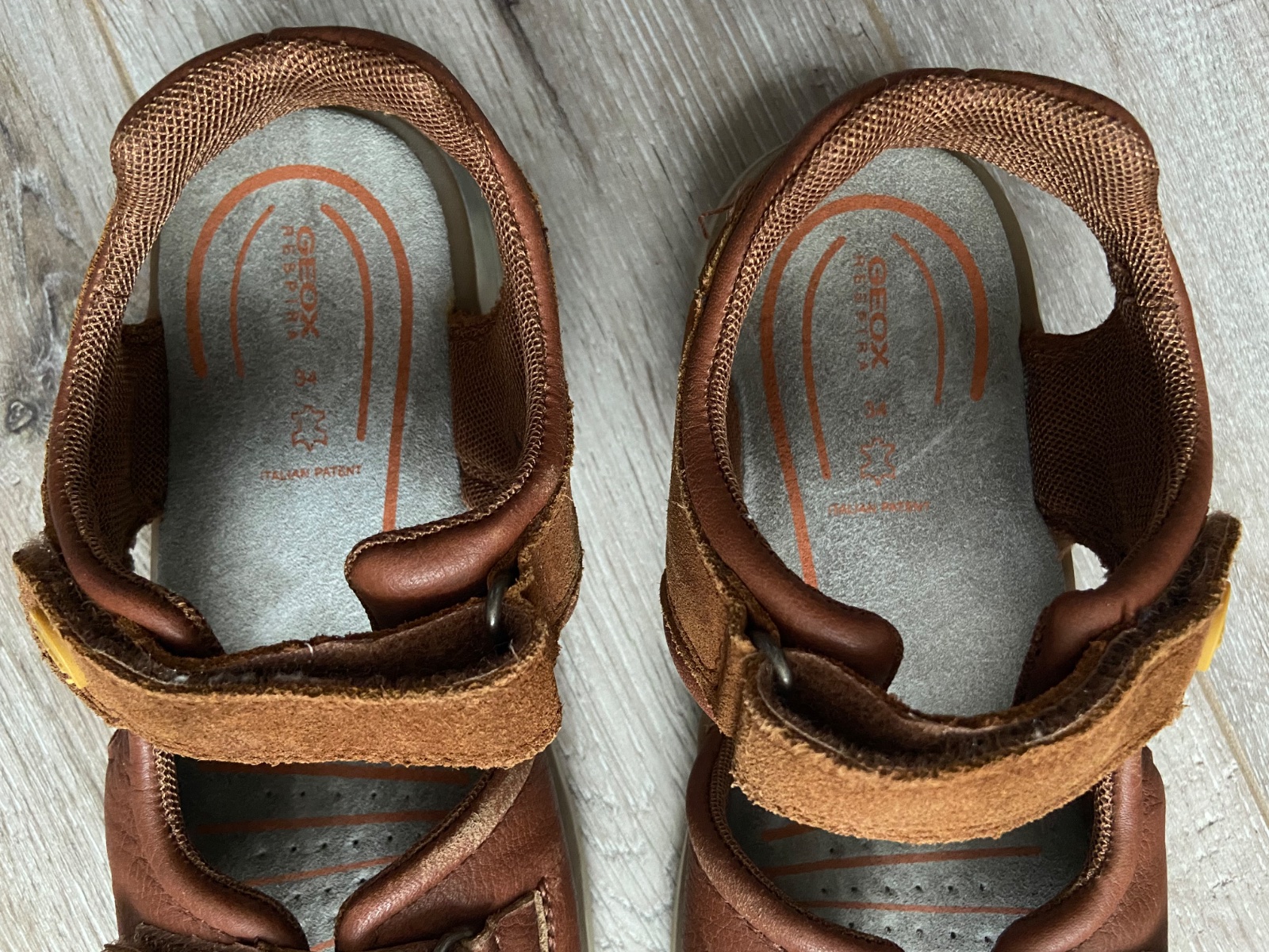 Predam raz obute sandalky Geox. Neschodene, bez poskodeni. Nesadla velkost. Velkost 35, ale podla mna skor 34, riadte sa prosim rozmermi- dlzka tej svetlej casti, cize bez podrazky je 22 cm. Sirka ...