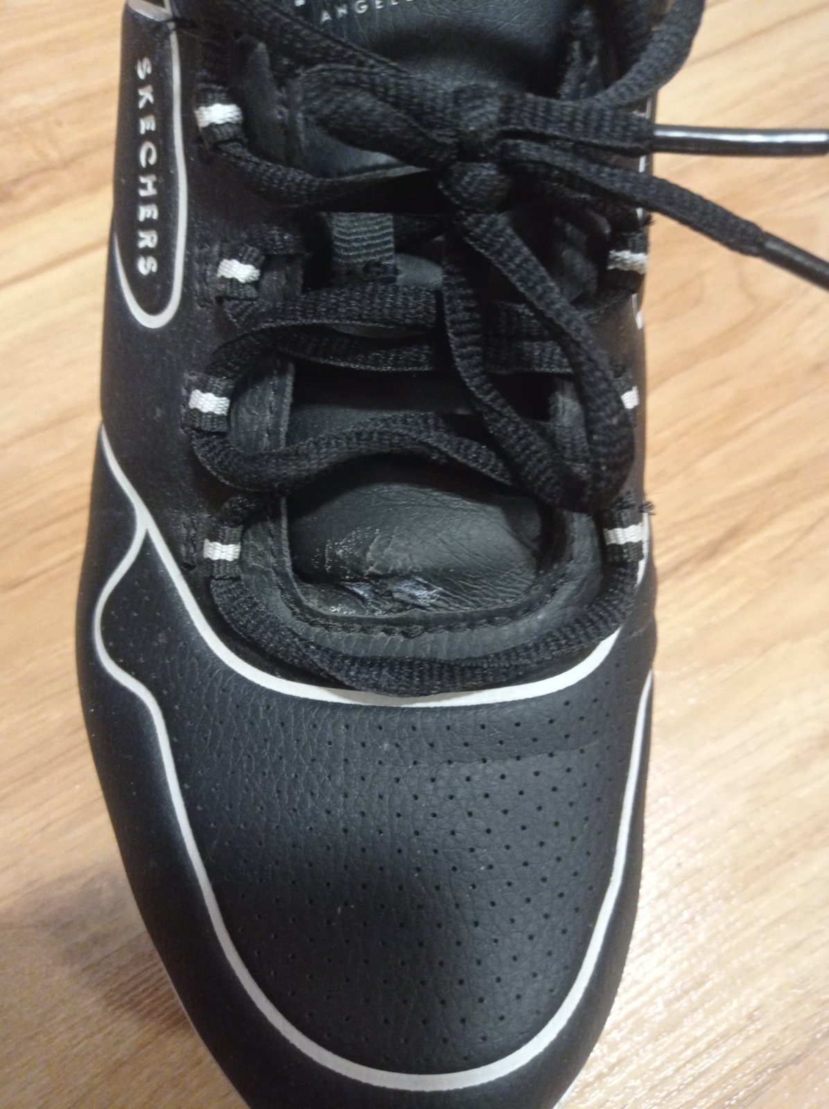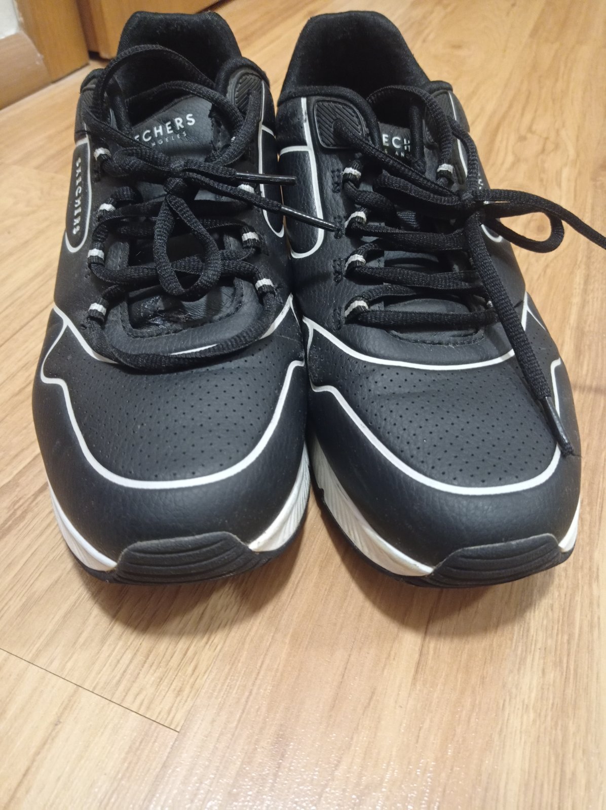 Skechers nosene, dobry stav. Nosenie vidiet po bokoch zvnutra vid foto, odrata farba. Na pate trosku uz zodrata podrazka zvonku. Na 1 topanke trosku zodraty vrch. Vnutorna dlzka:26 cm.