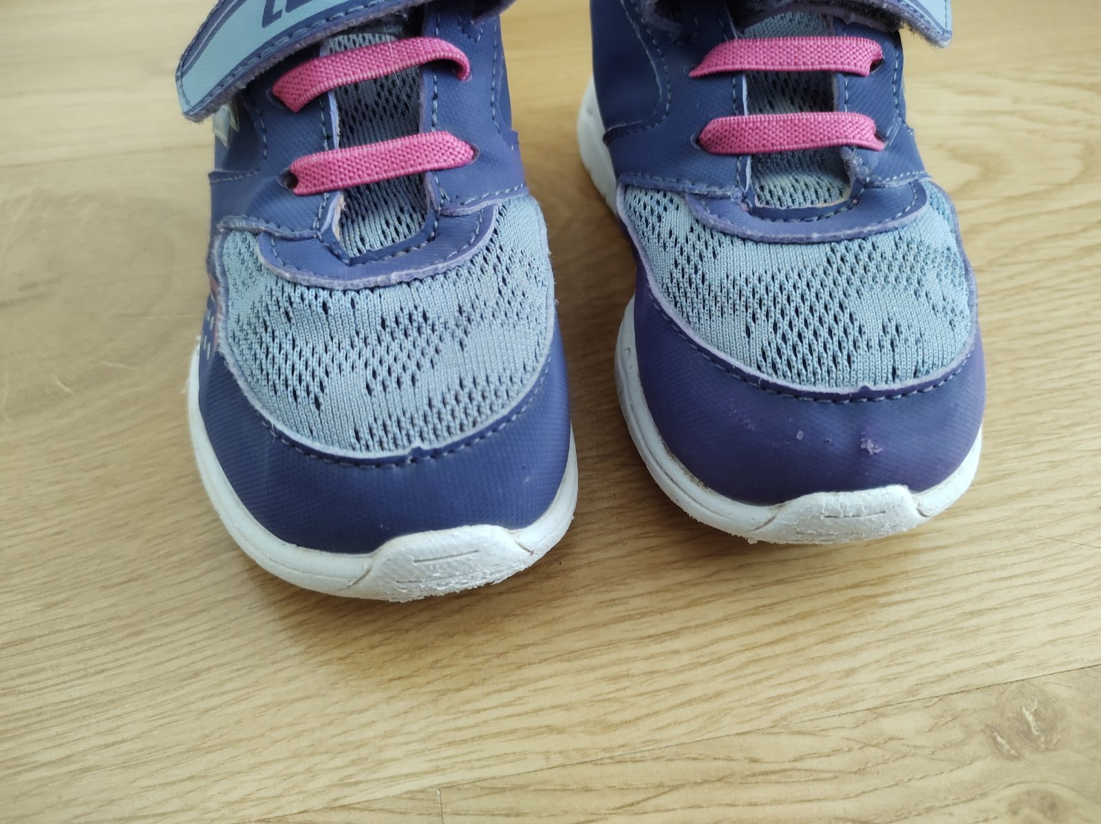 Fialové tenistky, na ľavej spredu mierne šuchnutá špička, inak bez poškodení.