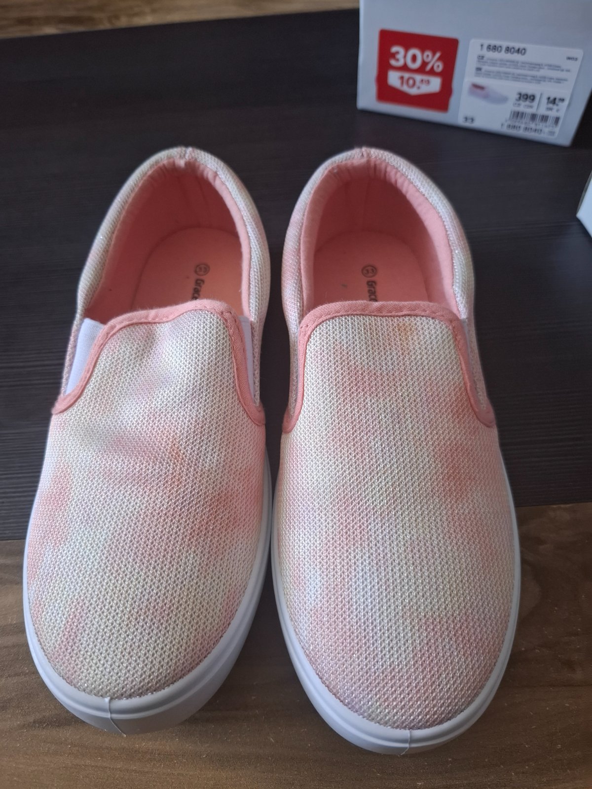 Ponúkam na predaj, kupované nové v Deichmane, najprv boli dcére veľké a teraz sú už malé tak posúvam. Farba pekná ružová a trochu sa aj trbliecu na svetle.