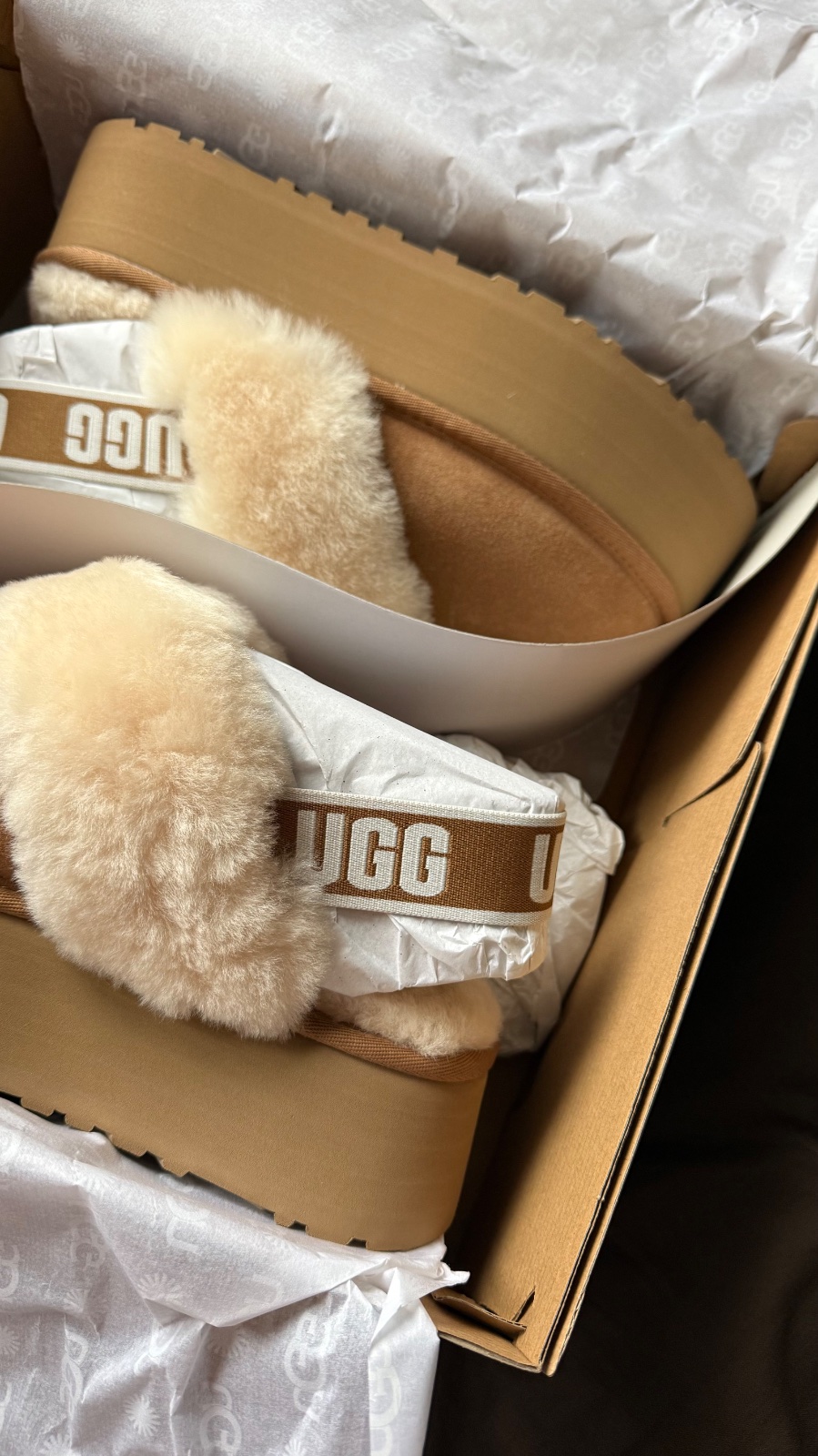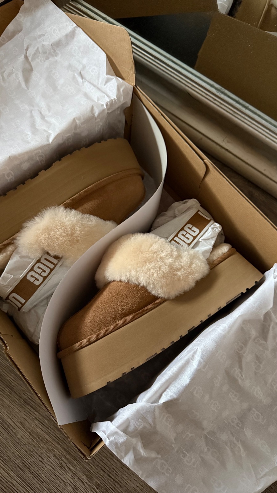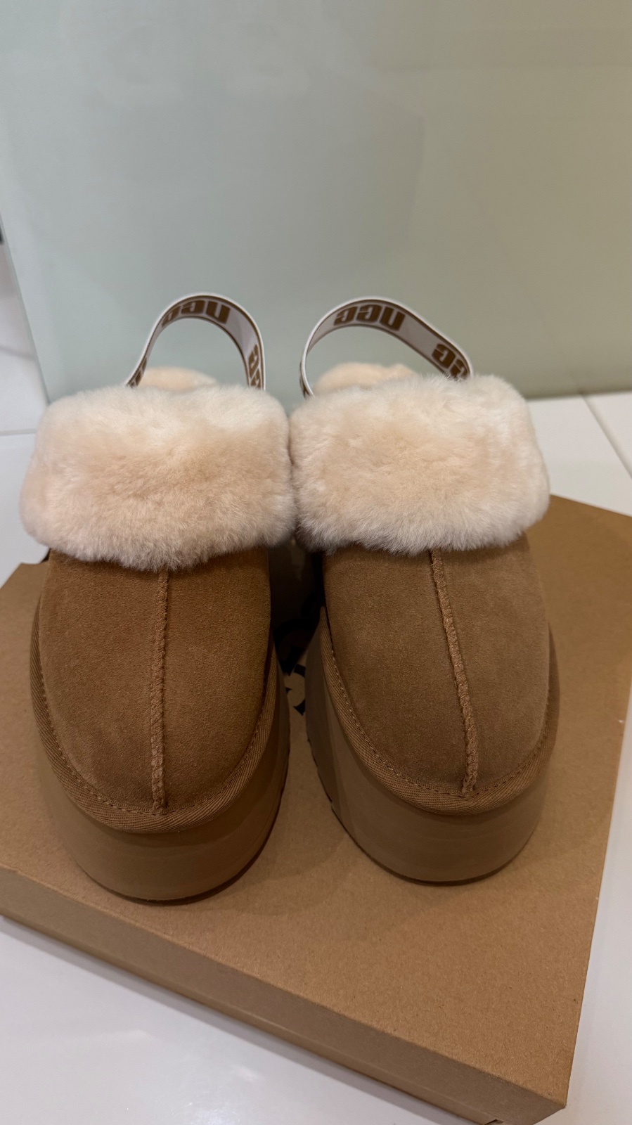 Predám tieto krásne a štýlové šľapky na platforme značky UGG, model Funkette v obľúbenej farbe Chestnut.