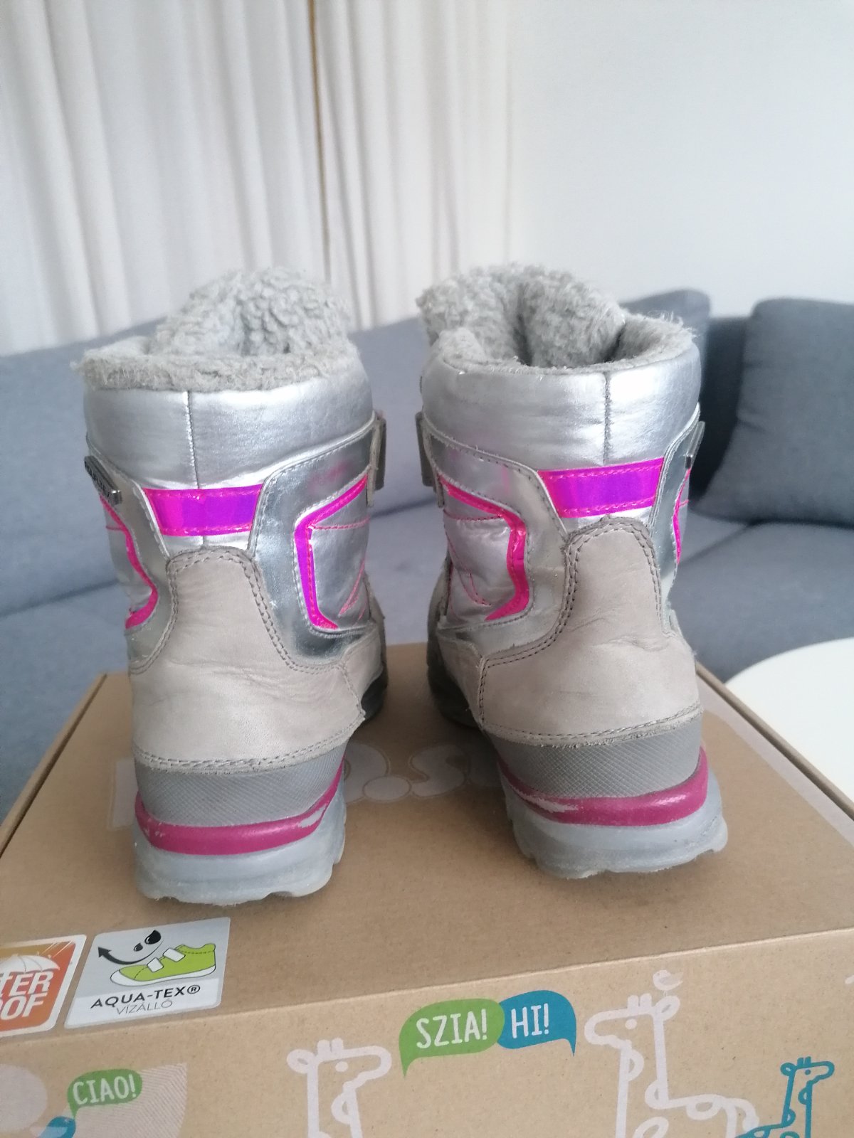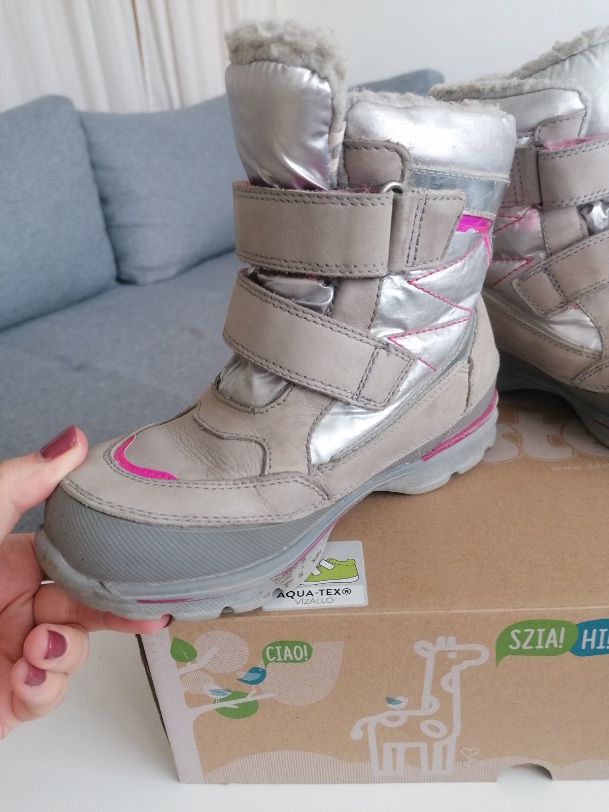 Ponúkam jednu sezónu nosené, teplučke, nepremokavé topánky.Bez poškodenia, sem-tam fľak na koži.Boli sme s nimi max. spokojné!
