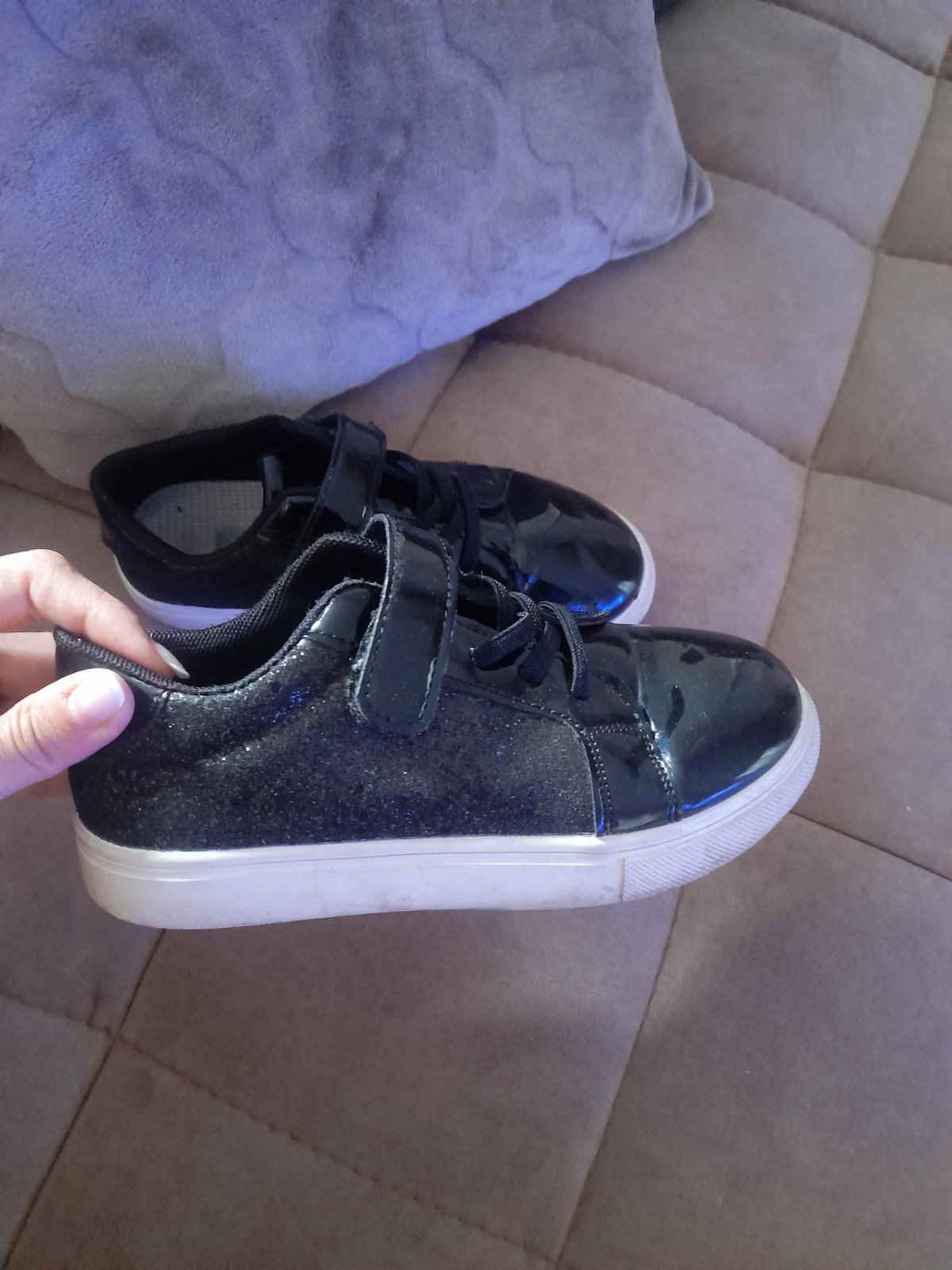 Tenisky sú v neposkodenom stave. Jediná vada je trochu zodrata farba na pätách z vnútornej strany. Ale bez dier.