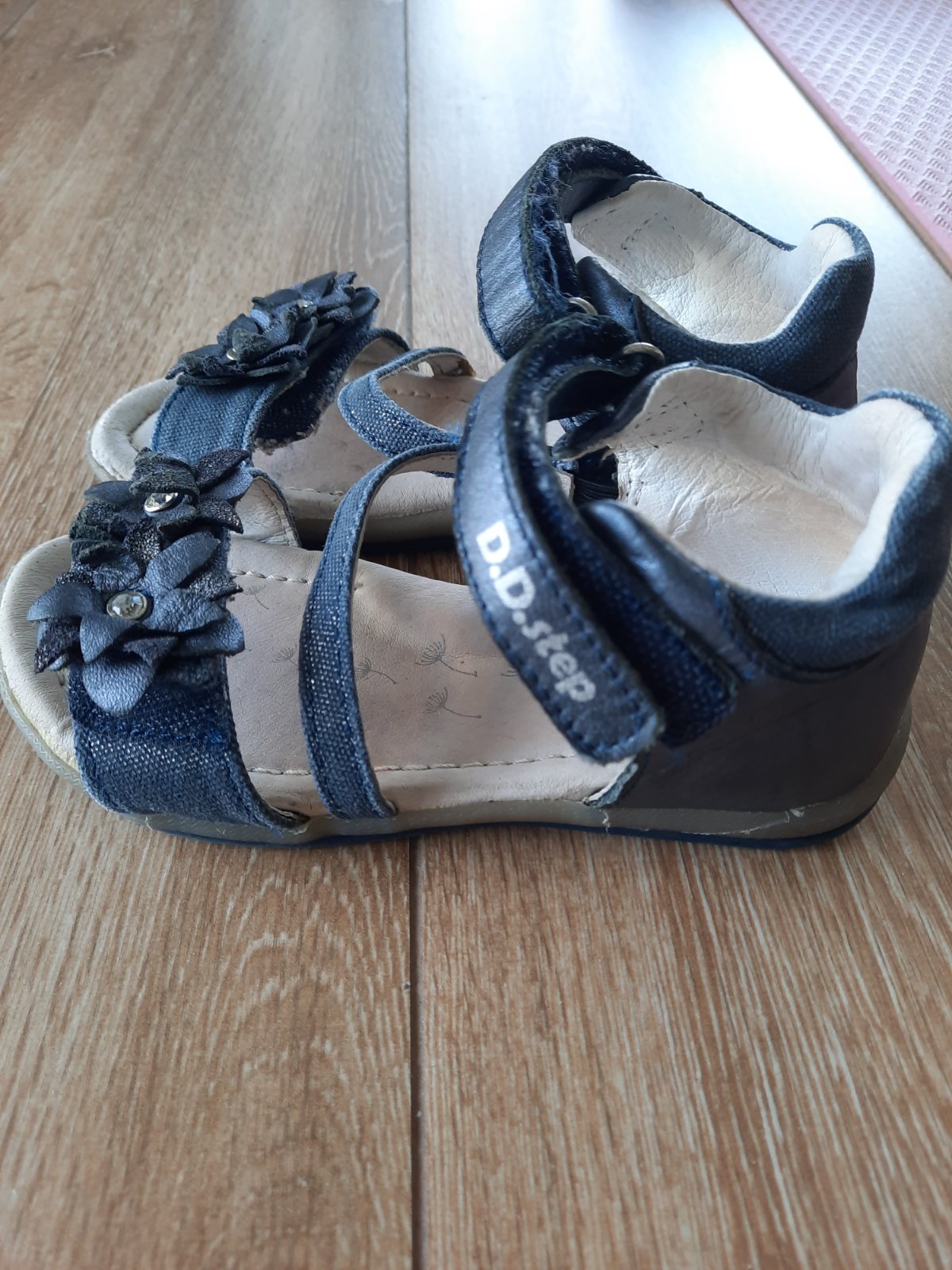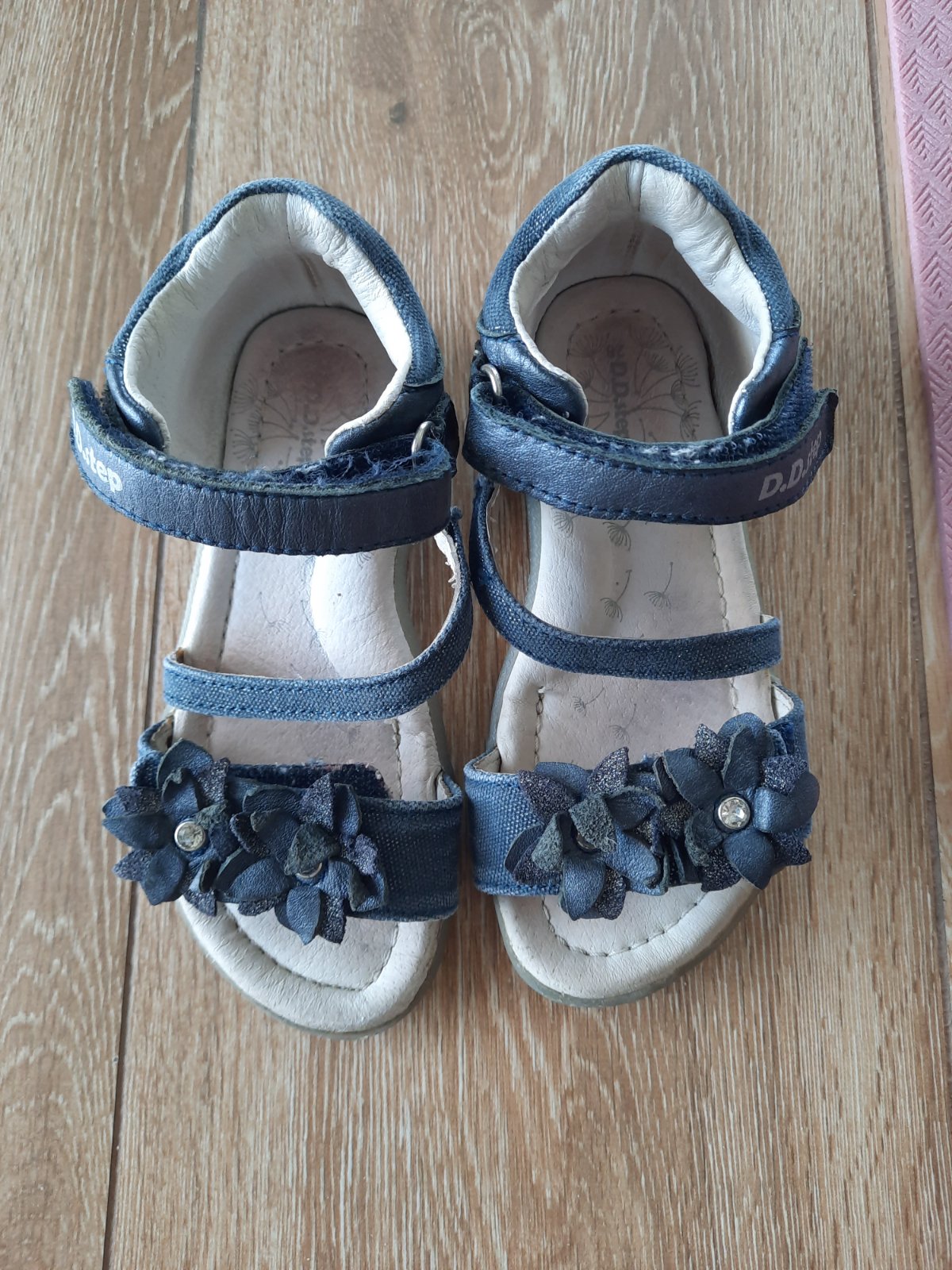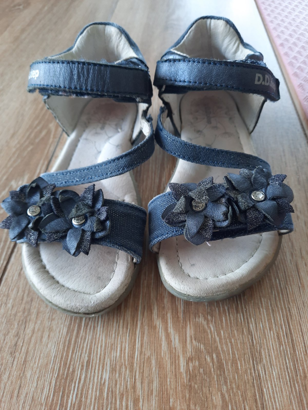 Kožené dievčenské sandálky D.D.step veľ. 28. Vo veľmi dobrom stave, nosené len chvíľu. Mierne zodratá podrážka na pätách.