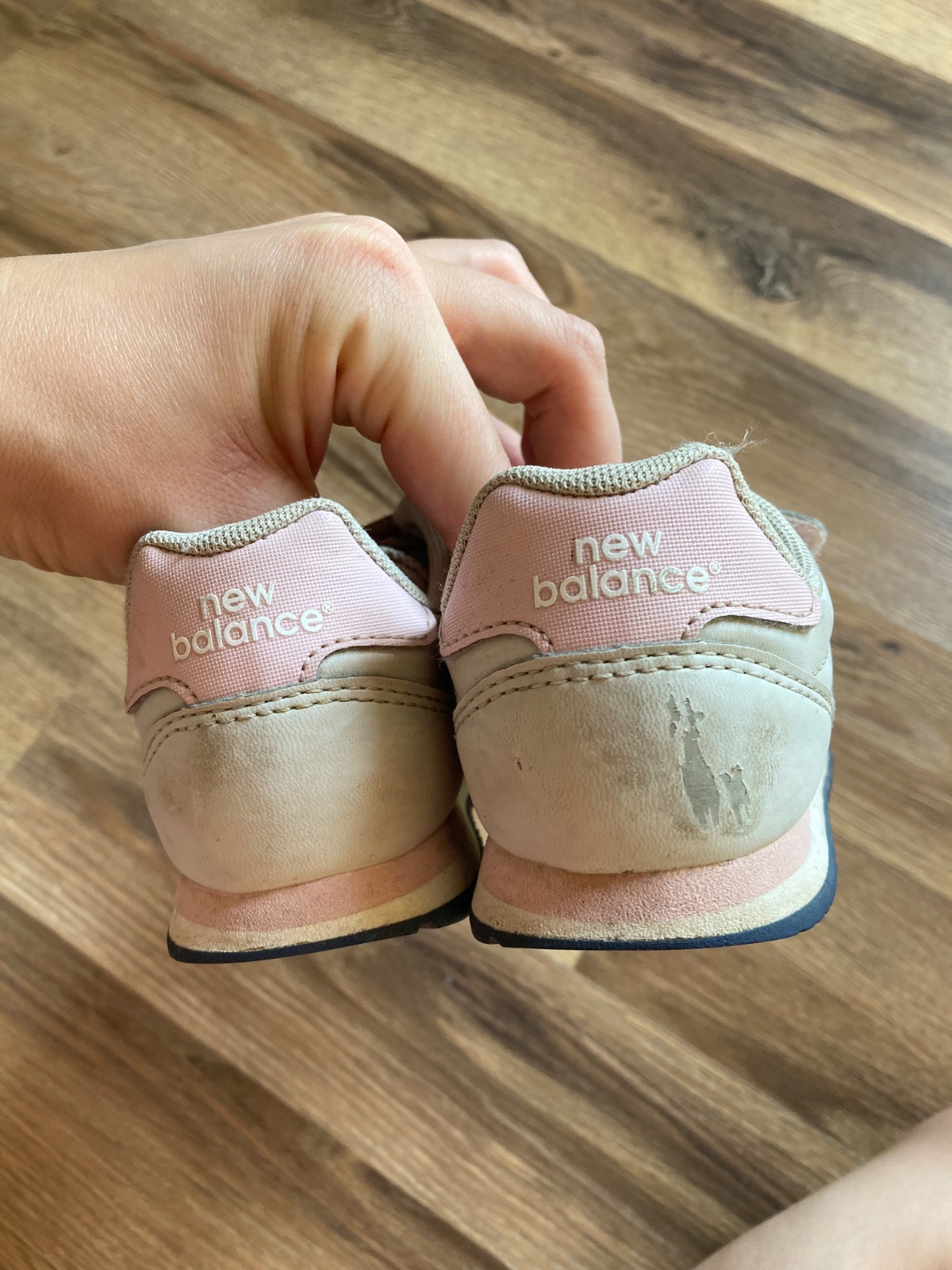 Posunieme sivé New Balance tenisky s ružovými a tmavomodrými detailami. Veľkosť 29, VD je 18,4-18,5cm. Sme druhí majitelia, k nám prišli ako nové, predtým asi 2x nosené predch. majiteľkou. Za nás super tenisky. Sú v dobrom nosenom stave, určite napr. v škôlke ešte poslúžia. Niekde sa už nedajú lepšie vyčistiť a na päte je odlúpené z povrchu. Celkovo však na pohľad stále slušné. Ja som kúpila za veľmi dobrú cenu, takže tiež posúvam za lacno :)