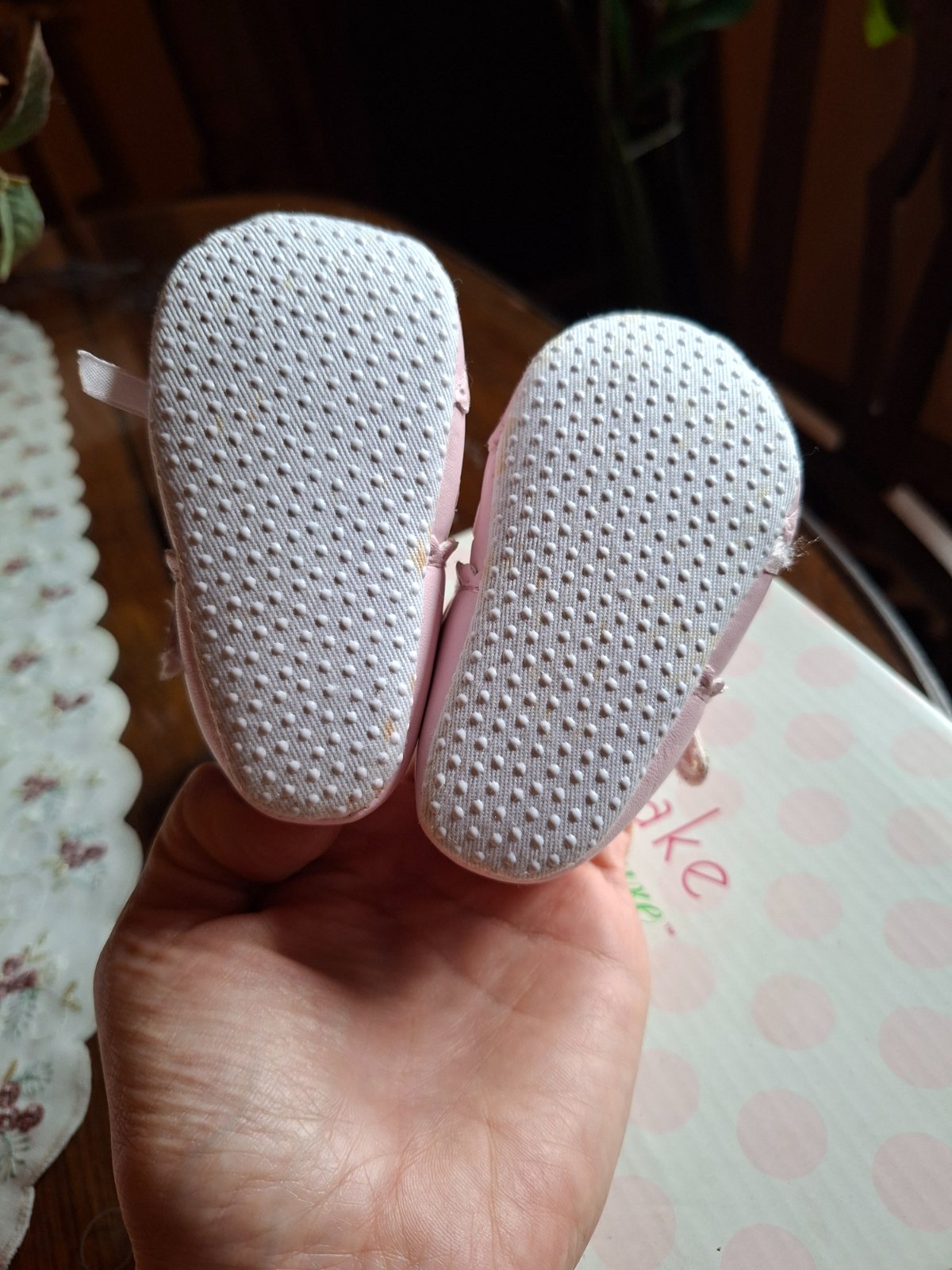 Dievčenské sandálky, asi na nôžku od 3 do 6 mesiacov.
