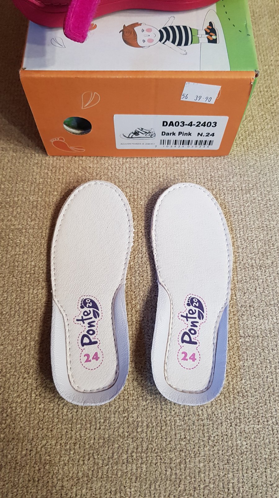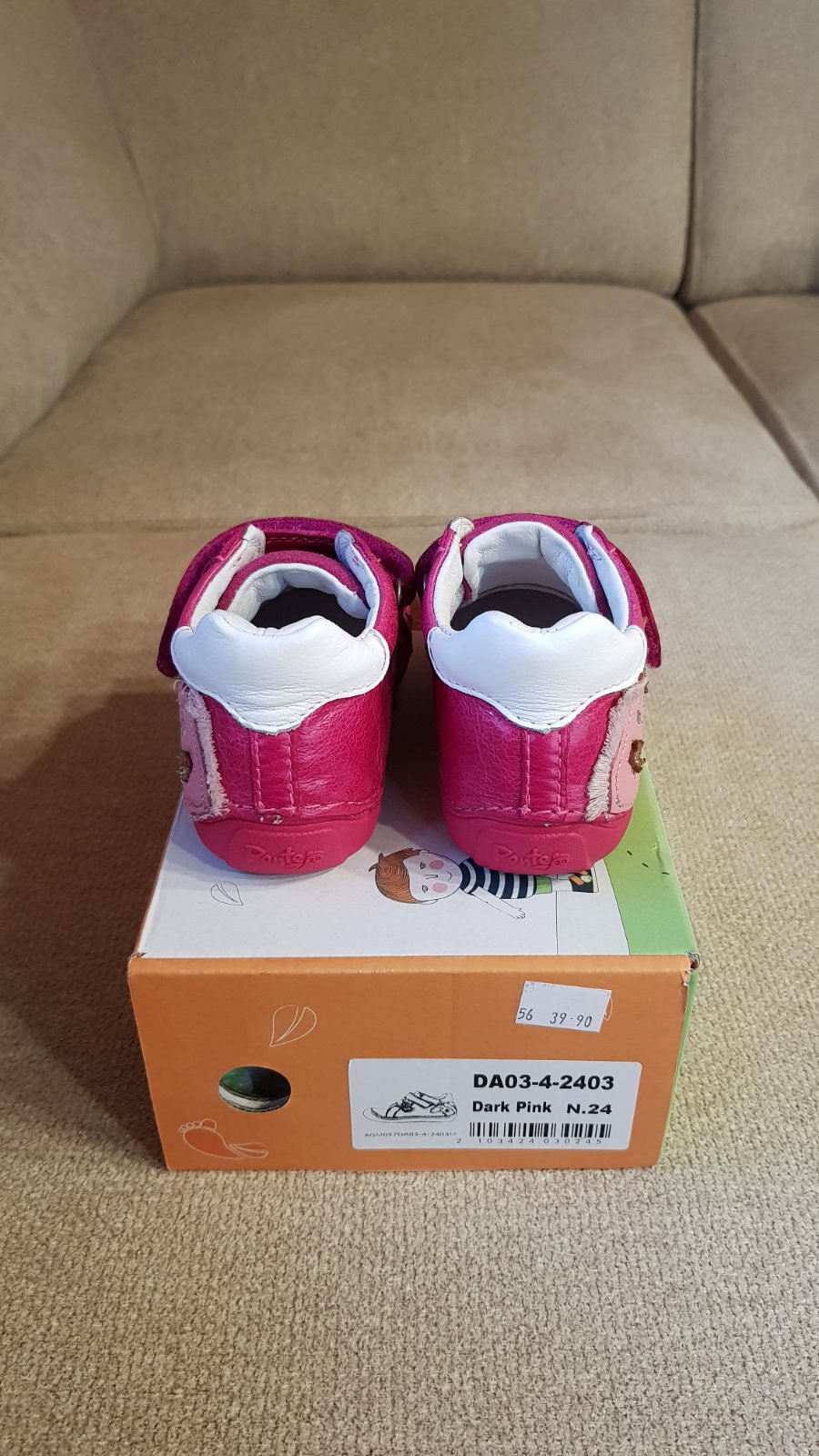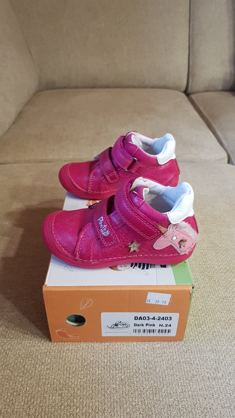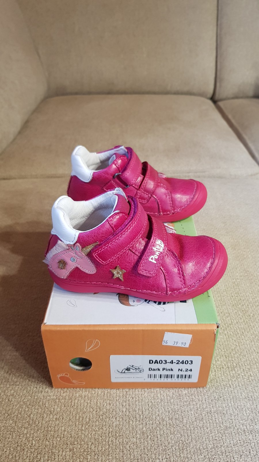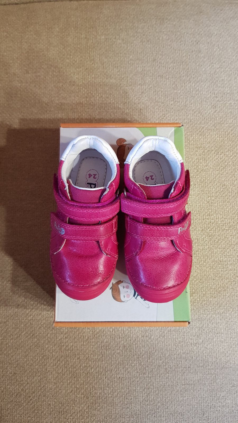 Dievčenské celokožené prechodné, veľkosť 24, vnútorná stielka 15,5 cm. Použité len 4x, aj to len na chvíľku, takže ako nové, viď foto. Pôvodná cena 40 €. Predávam za 30 € + pošta.