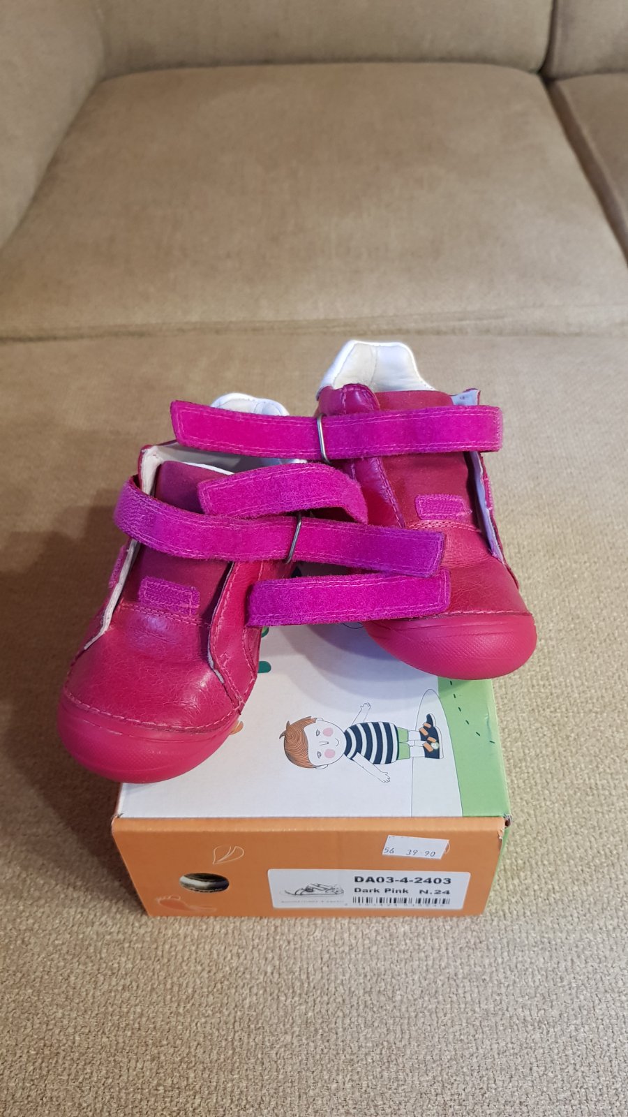 Prechodne kozene topanocky tiez malicko nosene akosi nam to s velkostami tento rok moc nevychadzalo cize malicko tiez nosene co je tiez krasne vidiet na minimalnom opotrebeni.Maju krasnu zajacikovu...
