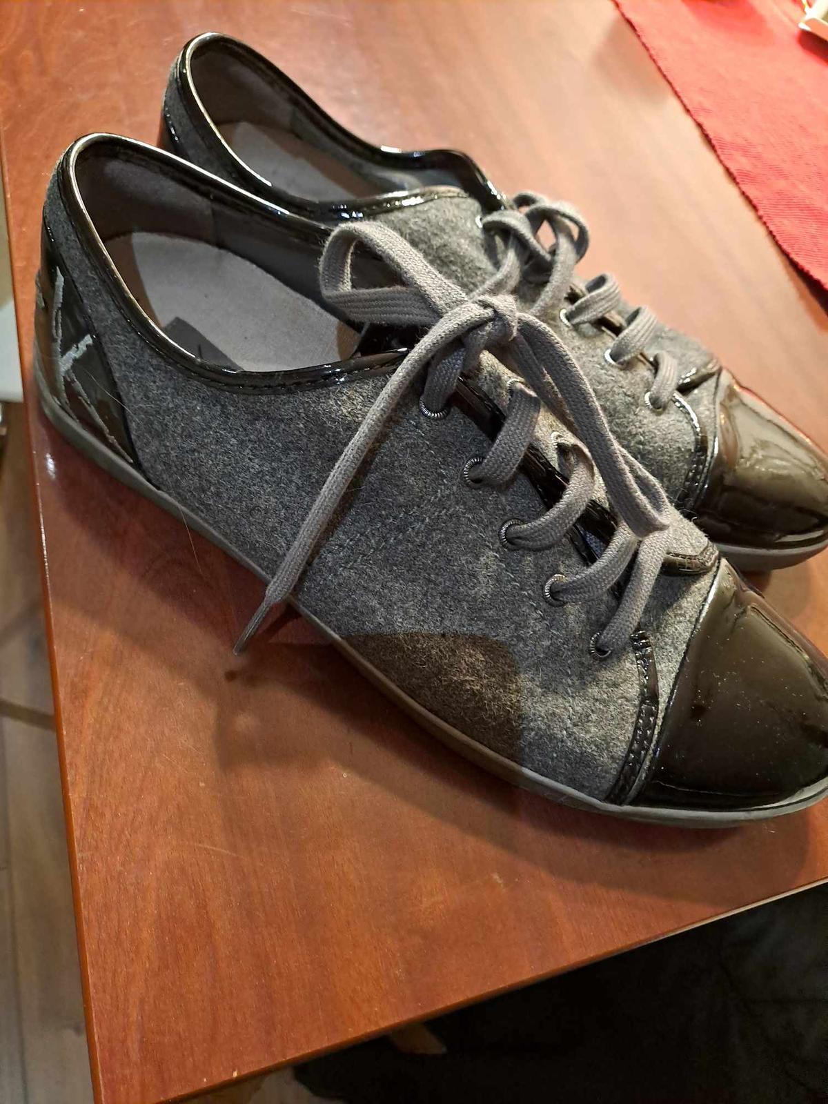 CK tenisky, vrch šedá látka, predná a zadná časť čierna