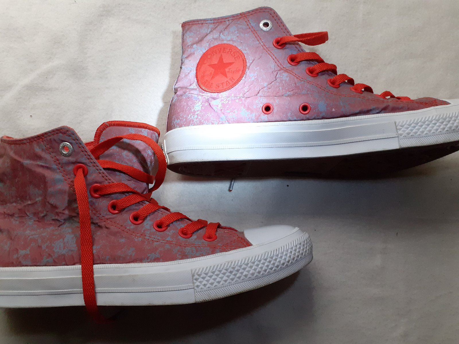 Predám unisex Converse All Star Tenisky Chuck Taylor II č. 42. Vnútorná stielka je 27cm. Tenisky boli nosené asi 4x. Tenisky sú vo veľmi dobrom stave a v noci, keď na ne zasvietite svetlom, svietia ako sa od ich reflexného sfarbenia odráža svetlo. Stav viď. foto. Cena 15e + poštovné/osobne v Bratislave.