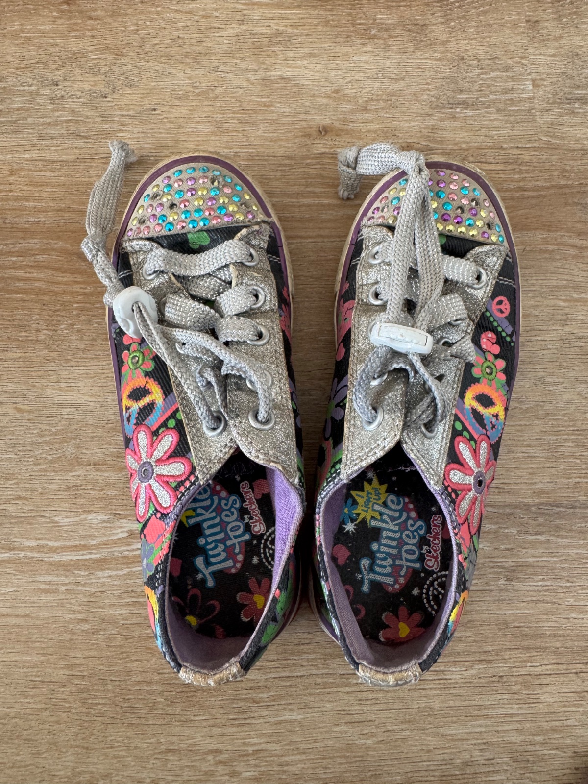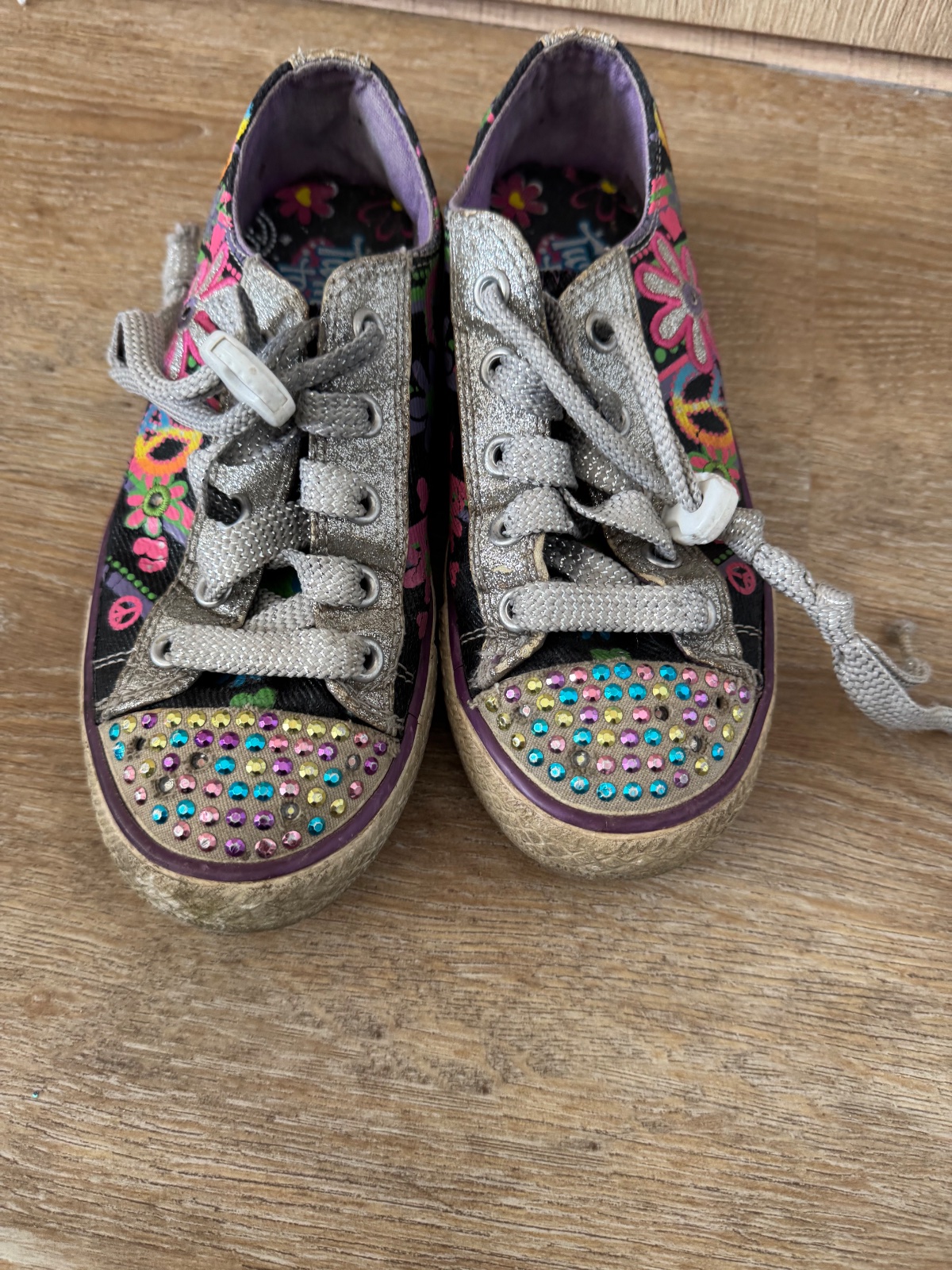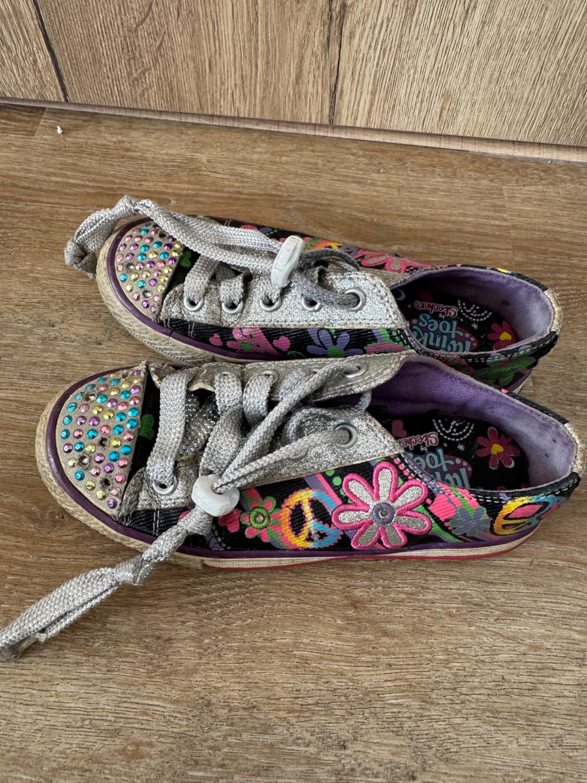 Ponúkam pekné tenisky Skechers veľ. 31 a uvedená vnút. dĺžka je 19,5cm, ja som namerala niečo medzi 19,5 až 20cm. Boli nosené, majú nejaké známky opotrebenia, keďže sme ich mali rady. Svietia. Ľahko sa obúvajú. Poštovné podľa taríf.