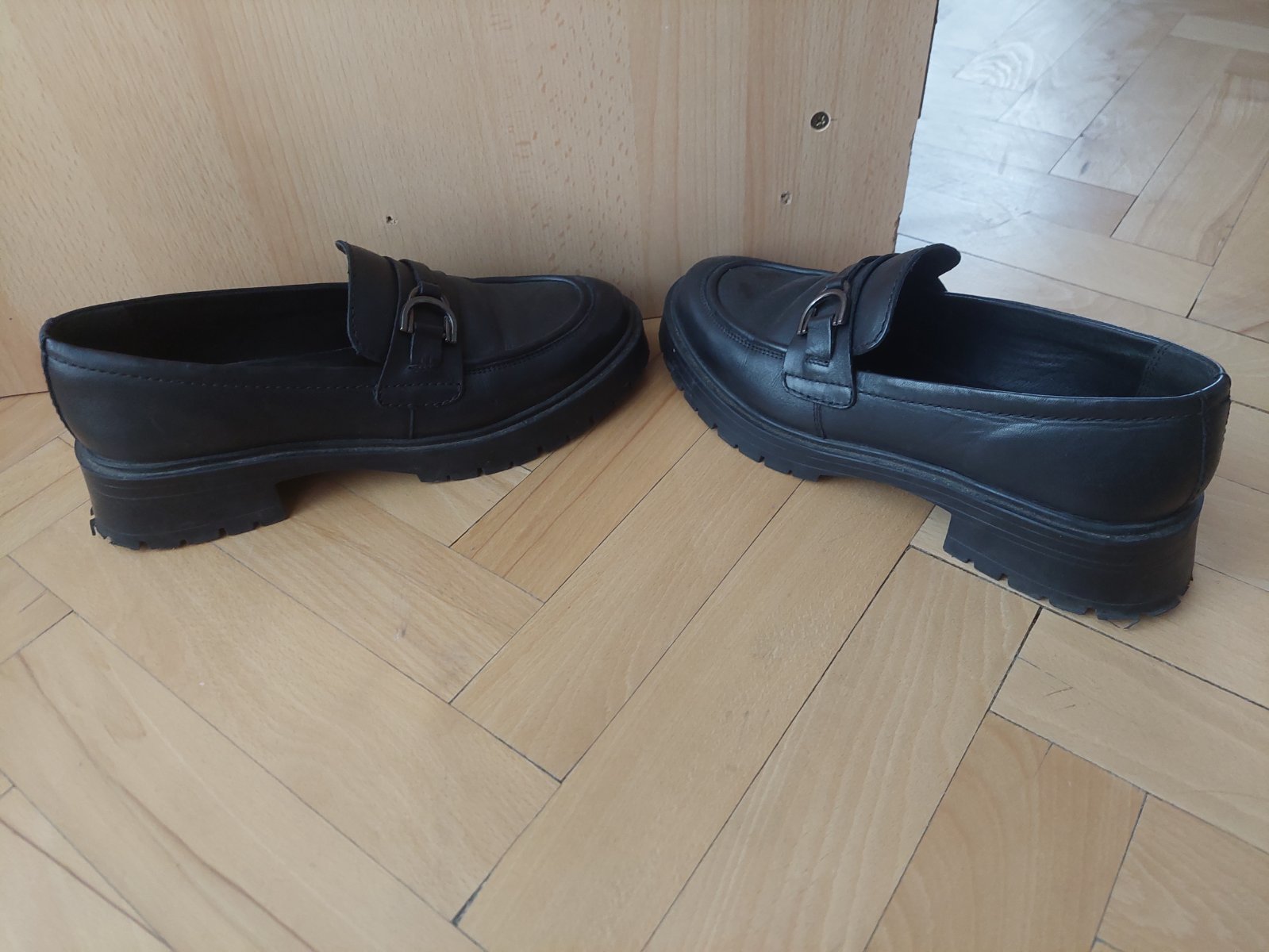 Kožené laofersy/mokasíny, párkrát nosené. Vynikajúci stav. Nevhodné na širokú nohu a vysoký priehlavok. VD je 27 cm.