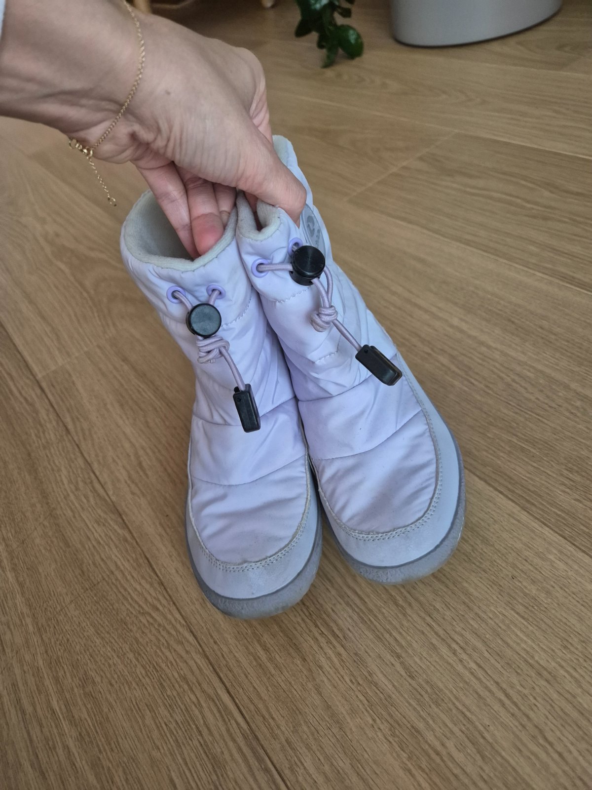 Nosené zimné topánky, na jednej puknutá špička. Dajú sa nosiť bez problémov na dvor..