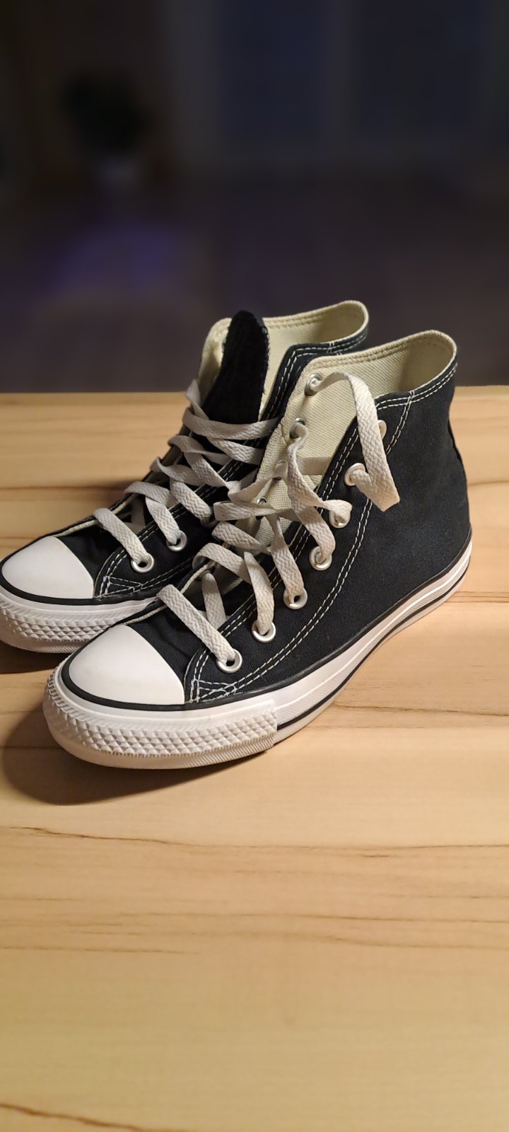 pekný stav, členkové tenisky Chuck Taylor Converse, na platforme, plátené, veľkosť 36,5, PC 84,90eur, viac nosené a boli nechané na slnku čím sa farba vyťahala, bolo by možné ich zafarbiť farbou na...