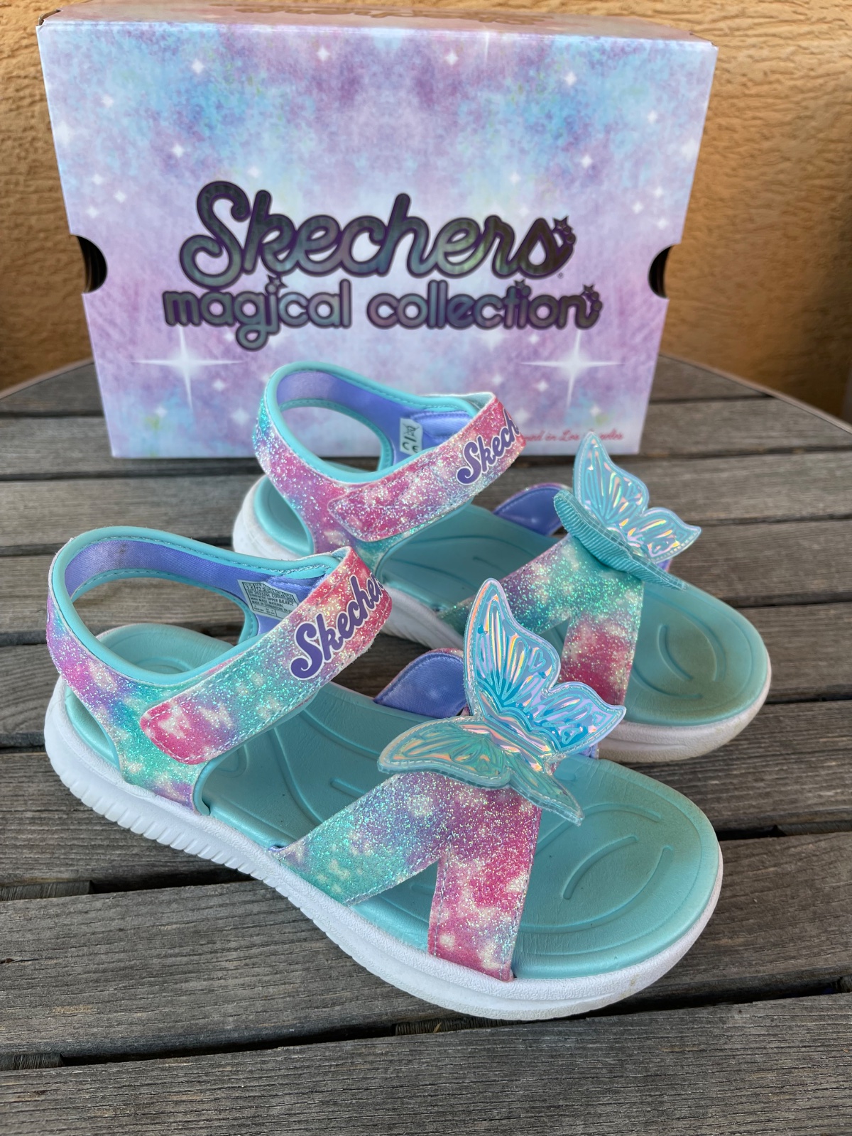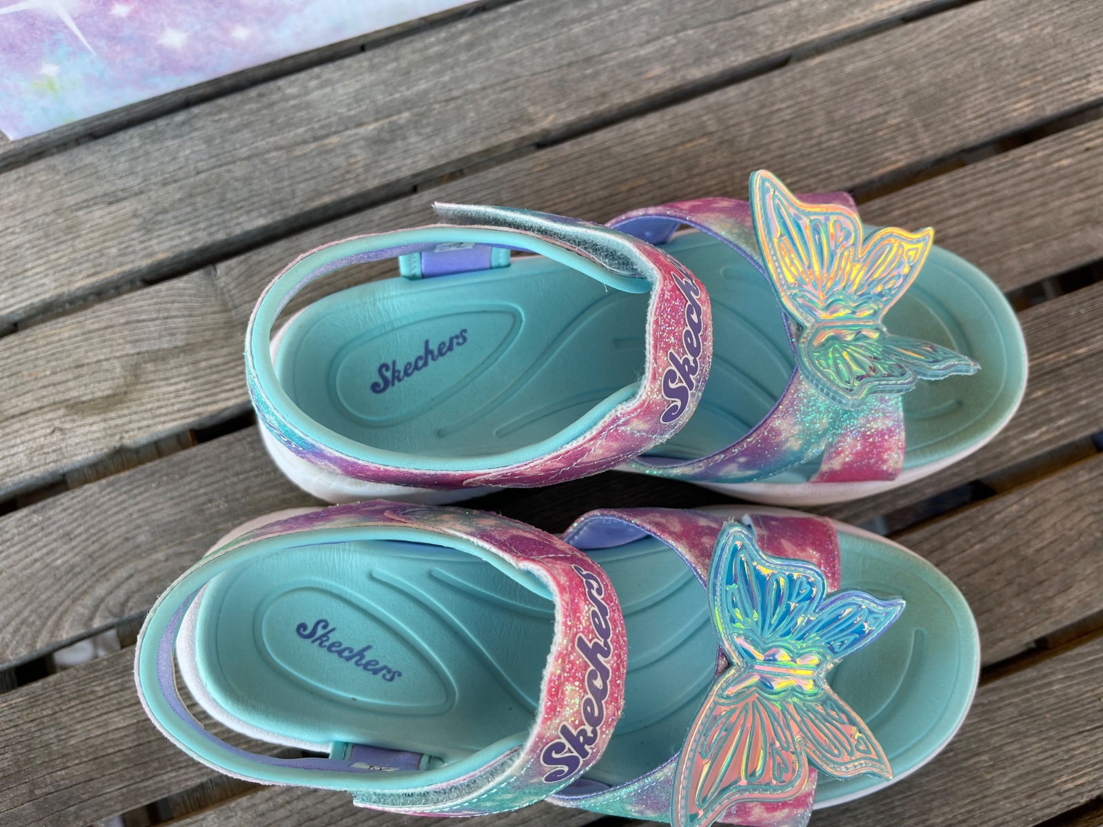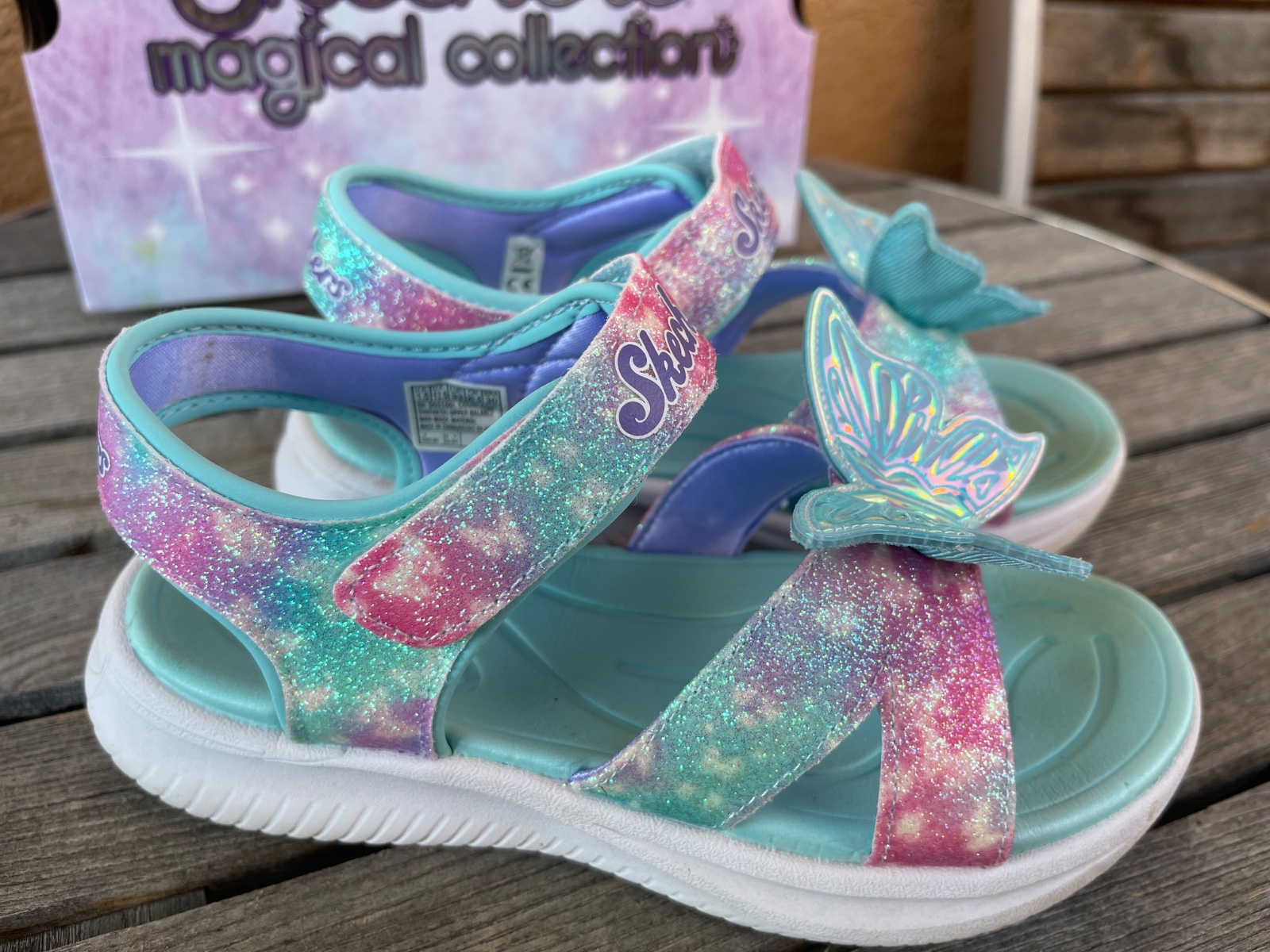 Sandále sú 2x obuté ešte v záruke, kupované 2.5.2025. Motýle svietia. VD 20cm
