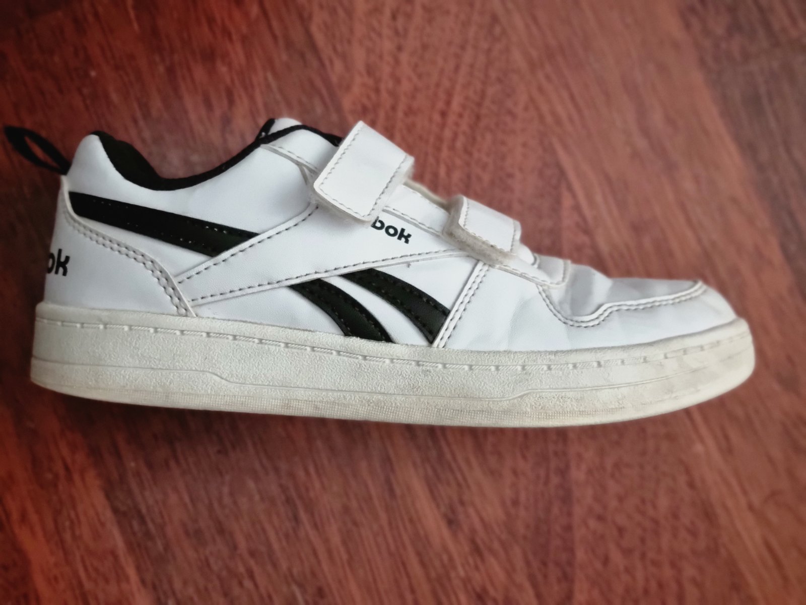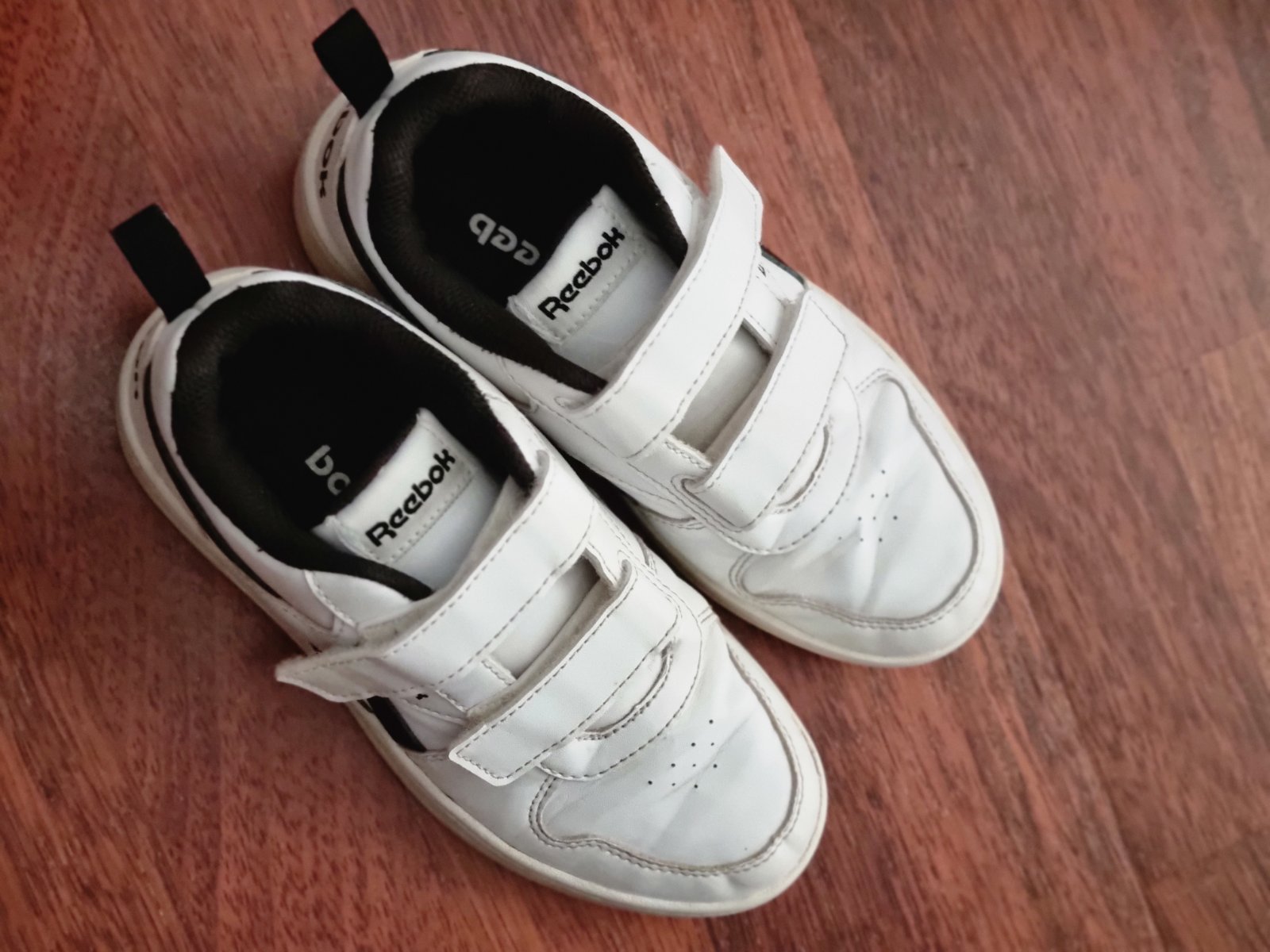 Klasické tenisky na 2 suché zipsy - držia dobre. Kupované nové v CCC predajni. Nosené synom 1 sezónu. Na štítku veľkosť 31 ale syn ich nosil keď mal ostatné topánky (napr. Adidas a Quechua halovky) vo veľkosti 32. Syn bol spokojný tak sme znova kúpili tieto isté o číslo väčšie (teraz syn nosí veľ. 33 a tieto Reebok sme kupovali veľ. 32). Takže podľa mňa je tento model veľkostne väčší ako uvádza označenie. Stav: poškodenia nemajú, na špičke vidno ohnutie z chôdze, ale to pri týchto sneakeroch tak býva. Predajná cena bola 35 E.