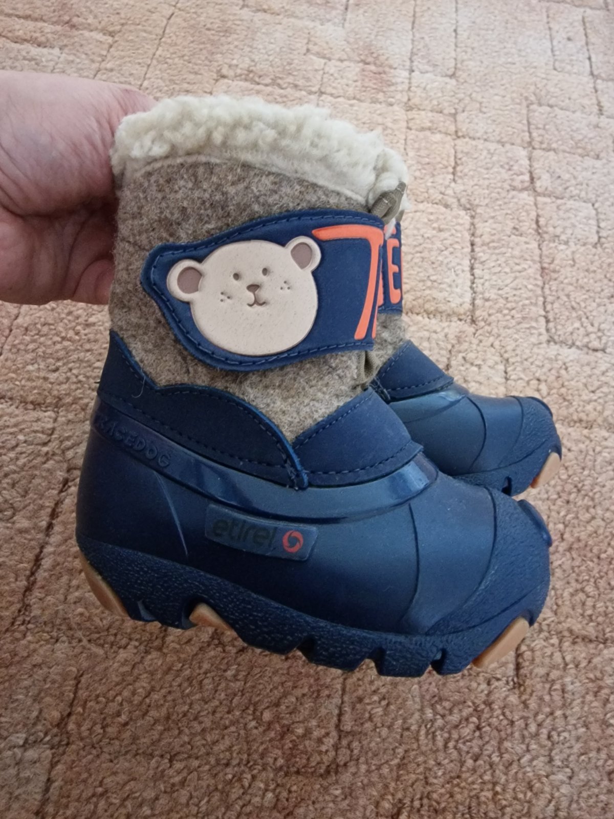 Ponukam 2krat obute zimne topanky ako snehule,so zipsom lahko sa obuvaju,velkost 19. Ziadne poskodenia,ako nove bez znamok nosenia,bez skrabancov,poskodenia Vonkajsi zvrsok: prírodná koža a textíli...
