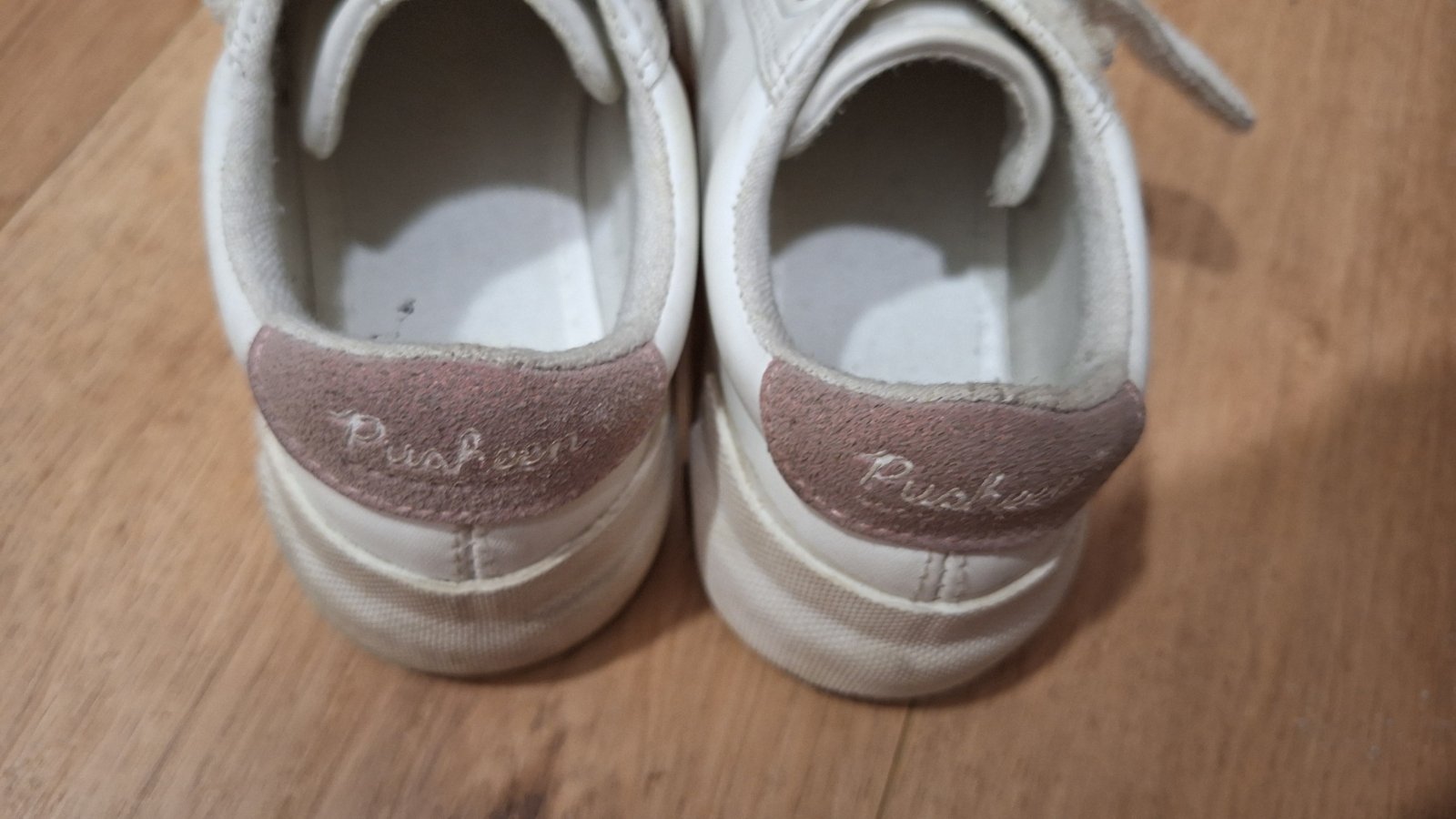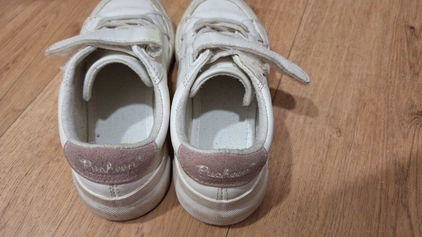 Pekný nosený stav, neokopané. Akurát už biela farba nie je biela 😊