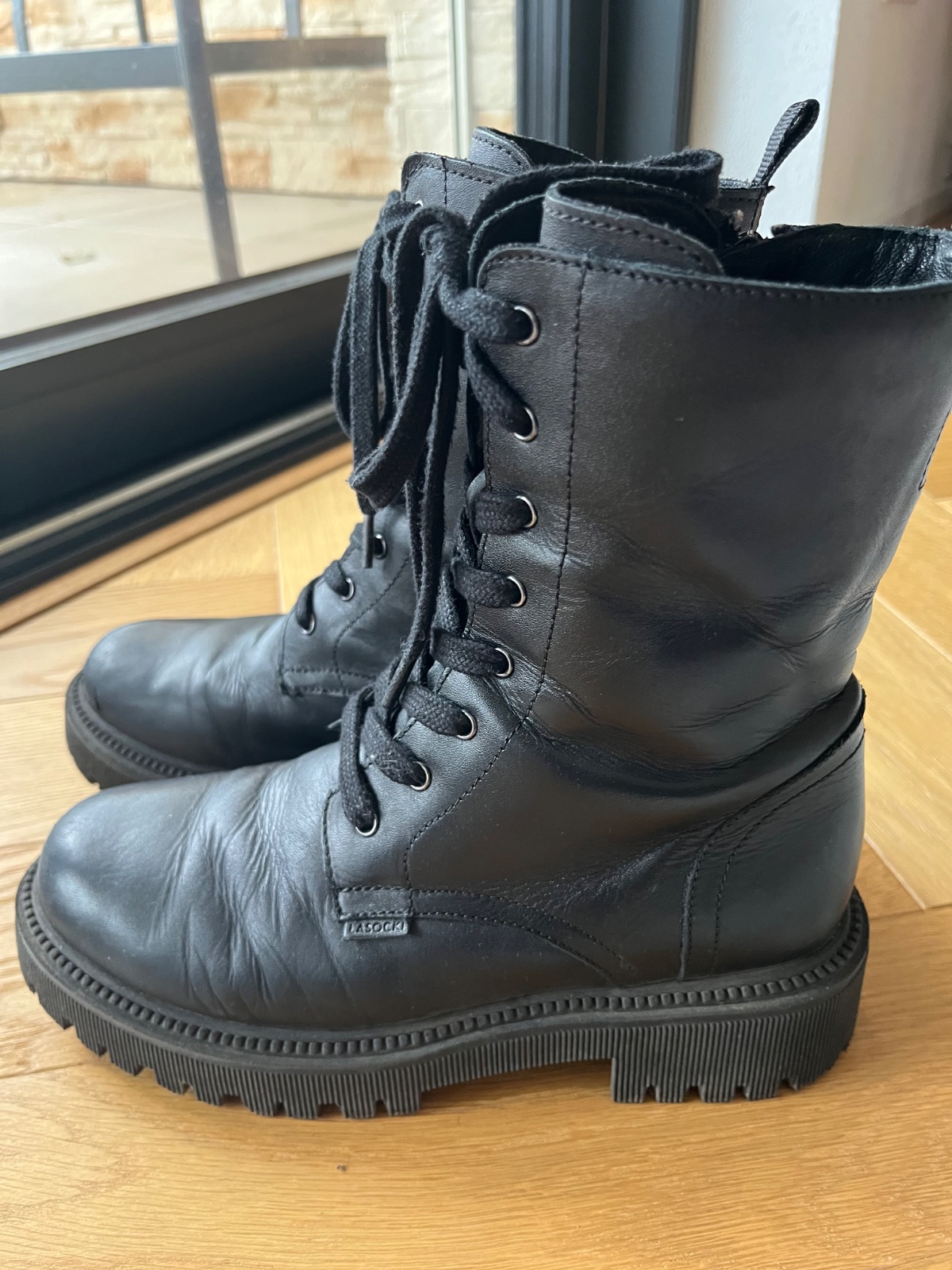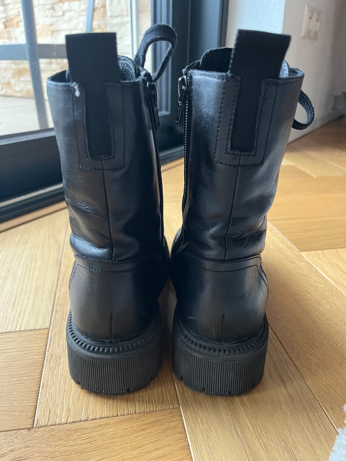 Štýlové kožené čižmy pre mladú dámu, nosené na striedačku a preto v peknom stave, ošetrované prípravkami na kožu.