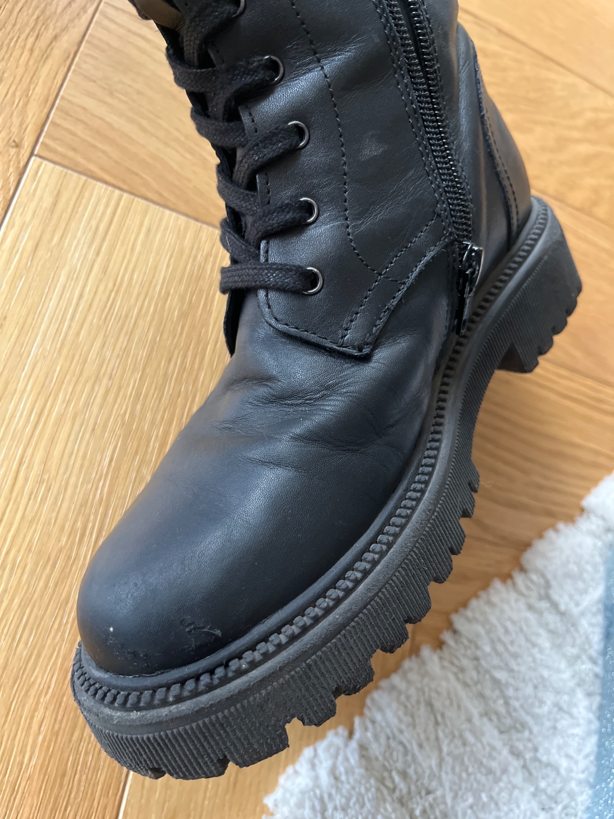 Na pravej topánke vpredu malé zakopnutie, viď foto, zohľadnené v cene.