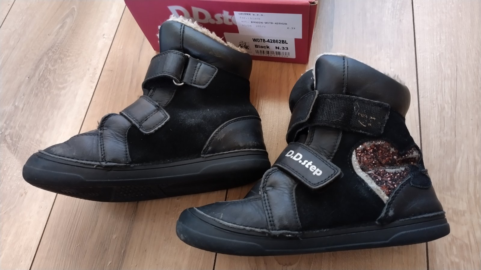Predám kvalitné celokoženné zimné čižmy Ddstep, veľkosť 33, bežné známky nosenia, teplé a vpredu dostatok miesta pre prsty, podrážka je gumenna takže sa nešmýka. Cena je 20€+poštovné