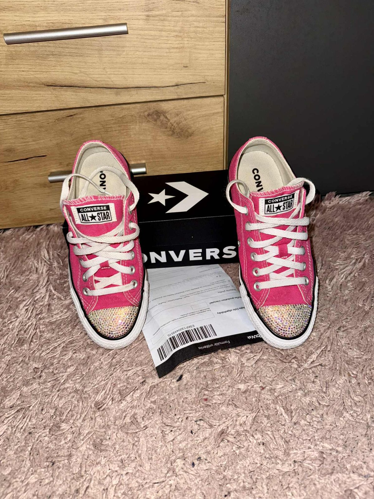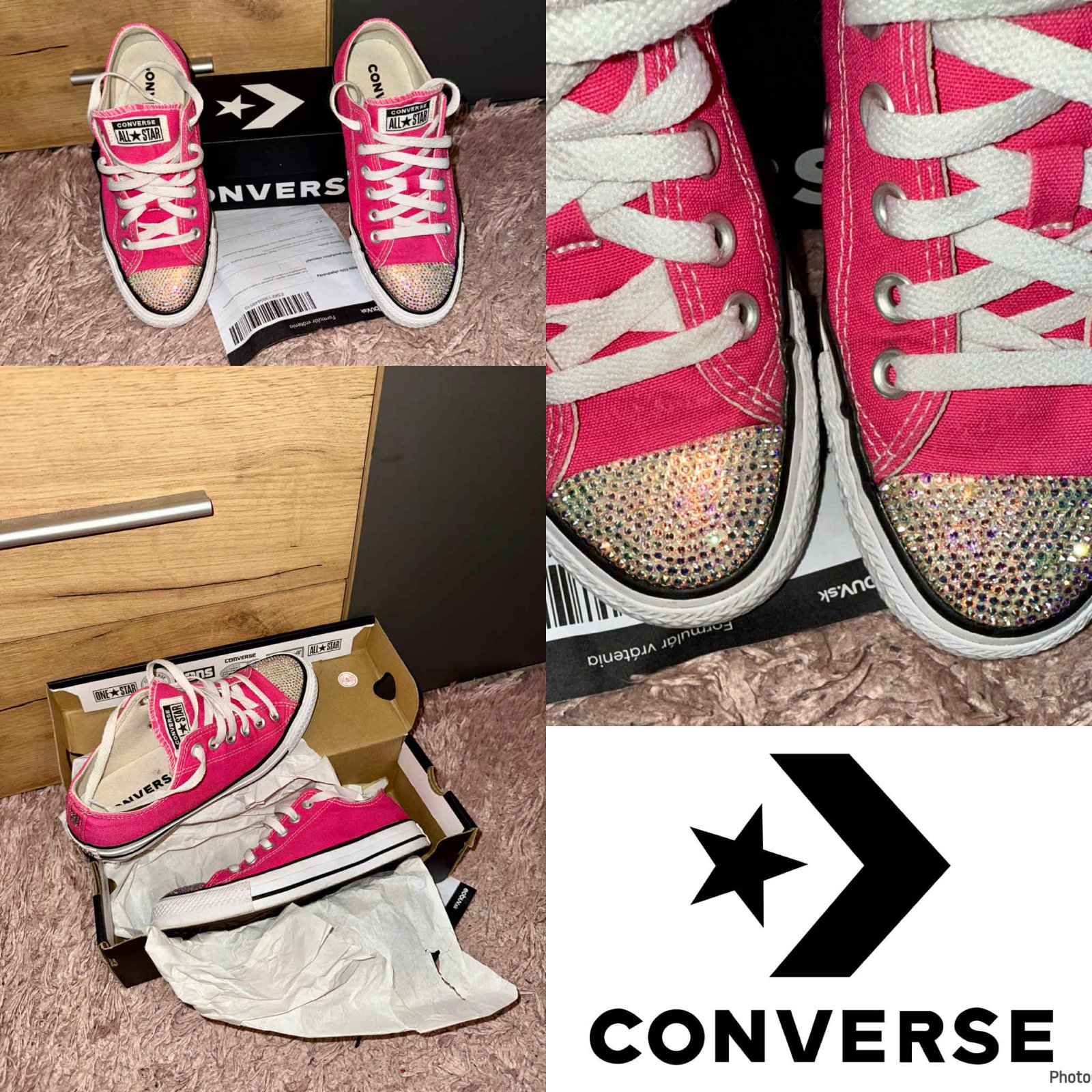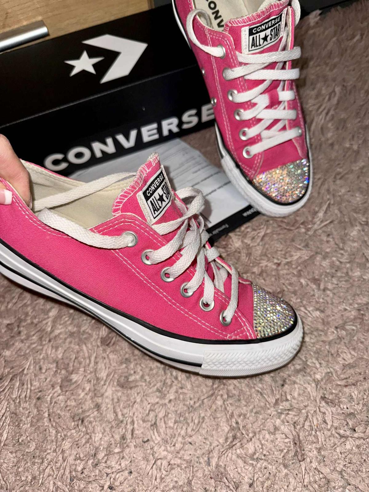 predam jedinecne kvalitne nove luxusne stylove converse hot Pink,samozrejme original s balenim,tenisky su v original swarovski Barbie uprave,nosene tak 3x v super stave ako nove,velkost je 37/24cm,pc vysoka