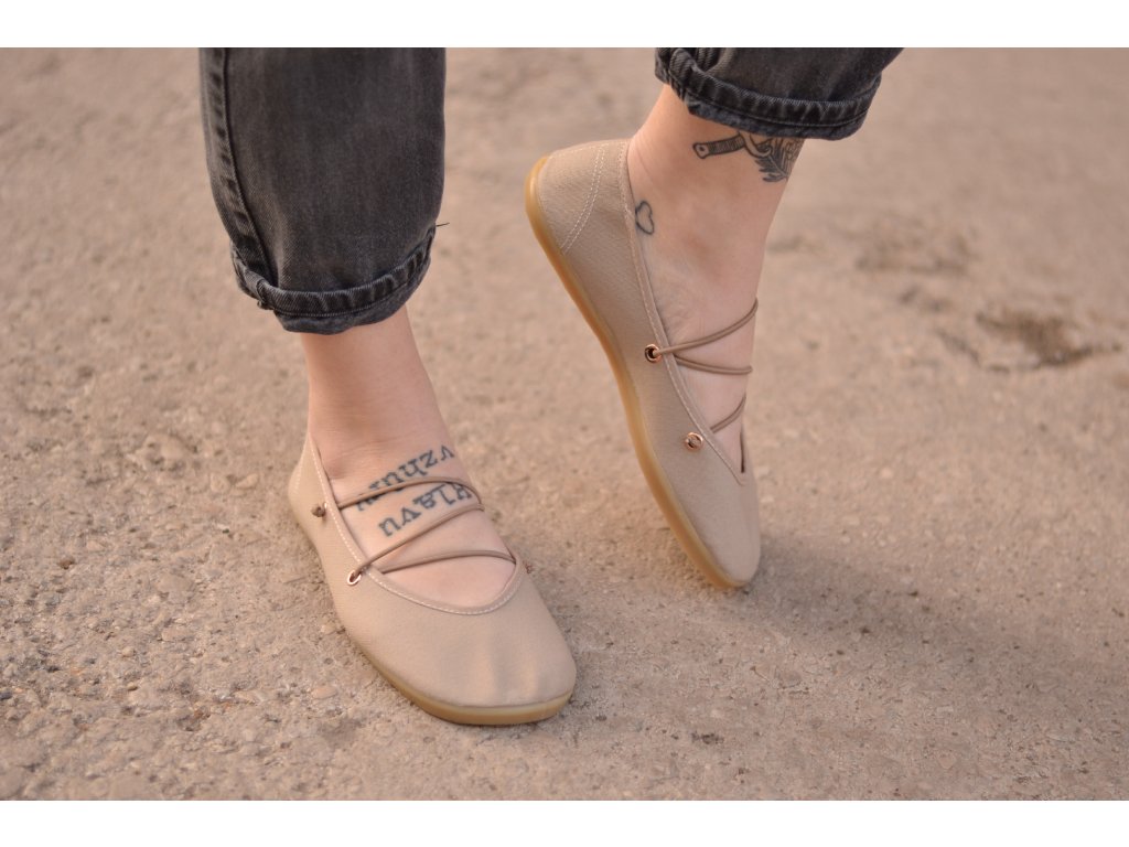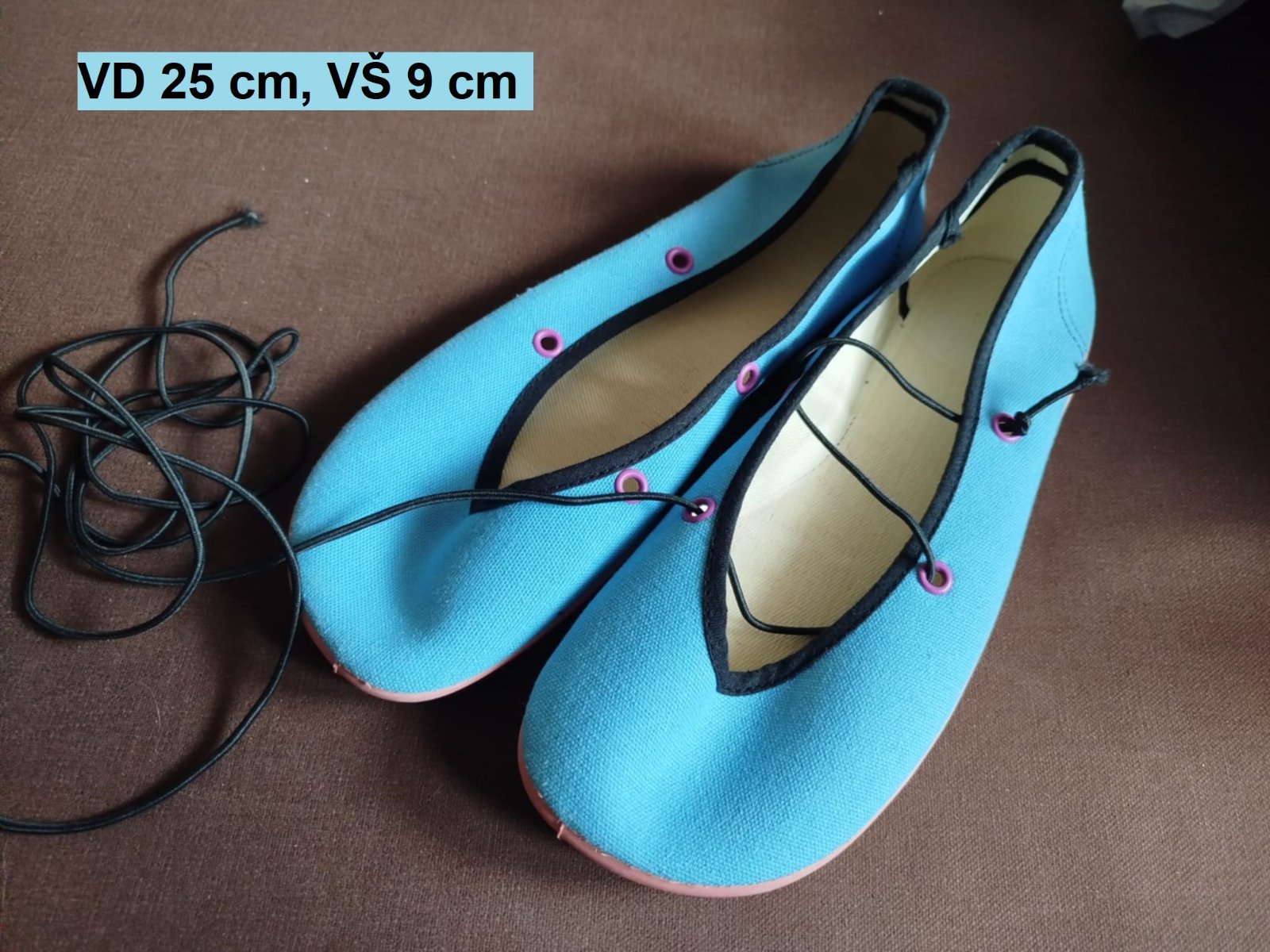 Barefoot plátenky balerínky Kecky od Rebeli.cz. Nové, veľkosť 38, VD 25 cm. Gumičku si viete sami natiahnuť a upraviť tak, ako potrebujete. Prípadne si tam dať aj inú, ozdobnú šnúrku. Baleríny sú z pevného plátna / canvas, vhodné na jar a leto.