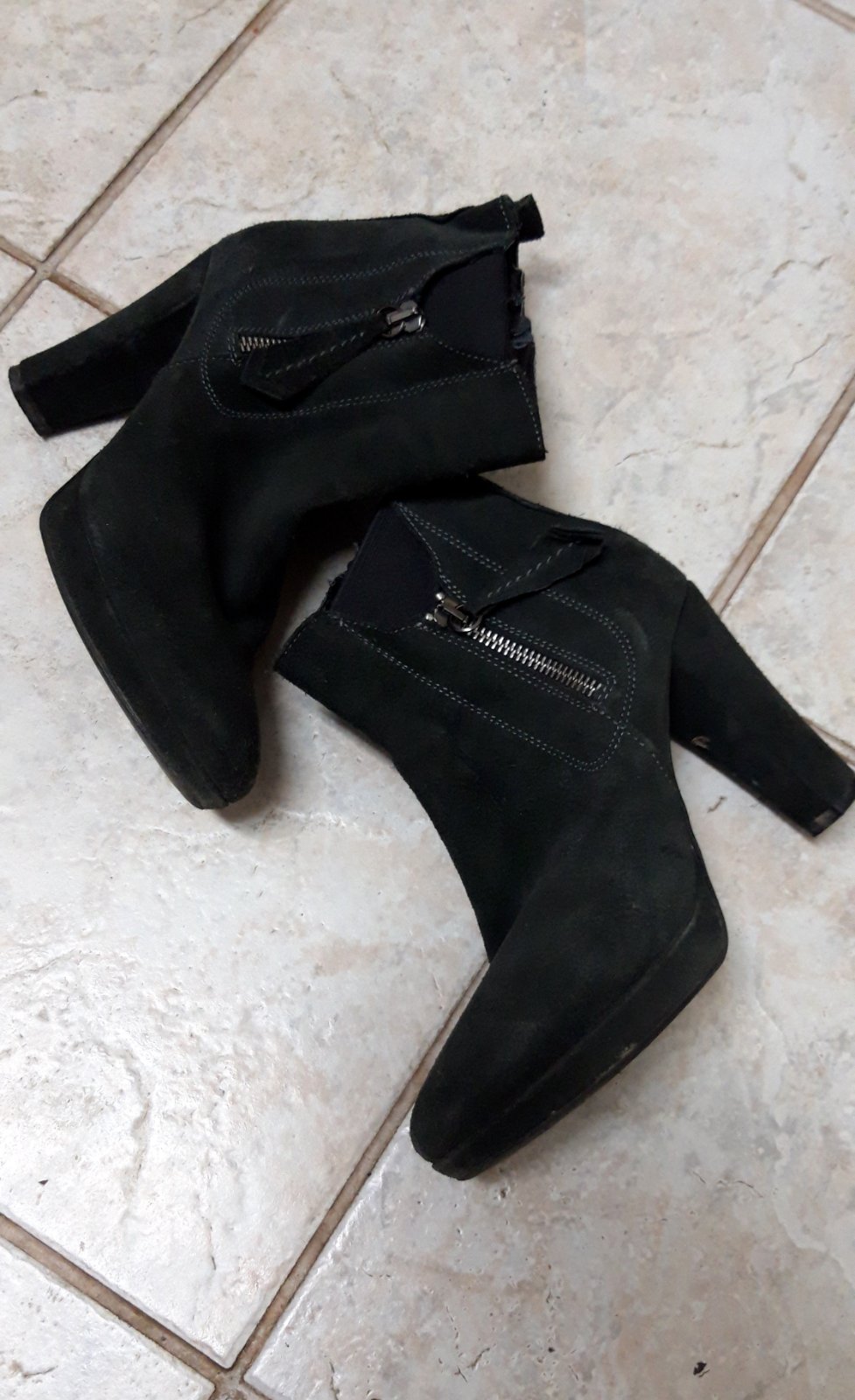 Zachovale kotnikove prechodne cizmicky velkost 37 a vnutorna dlzka je 23,5cm opätok 9cm ,vnutorne na boku trochu popraskane vid.foto