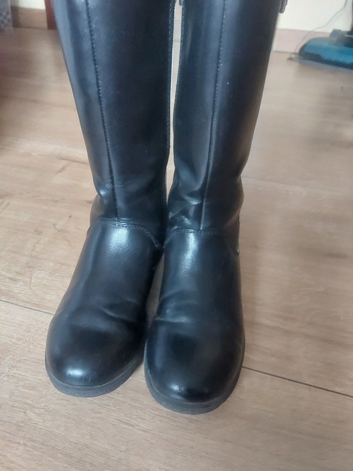 Pekne prechodne cizmicky, mierne vyteplene Vnut.dlzka cca 22cm,neda sa to poriadne odmerat Vonkajšia dlzka 23cm Vpredu trosku okopane