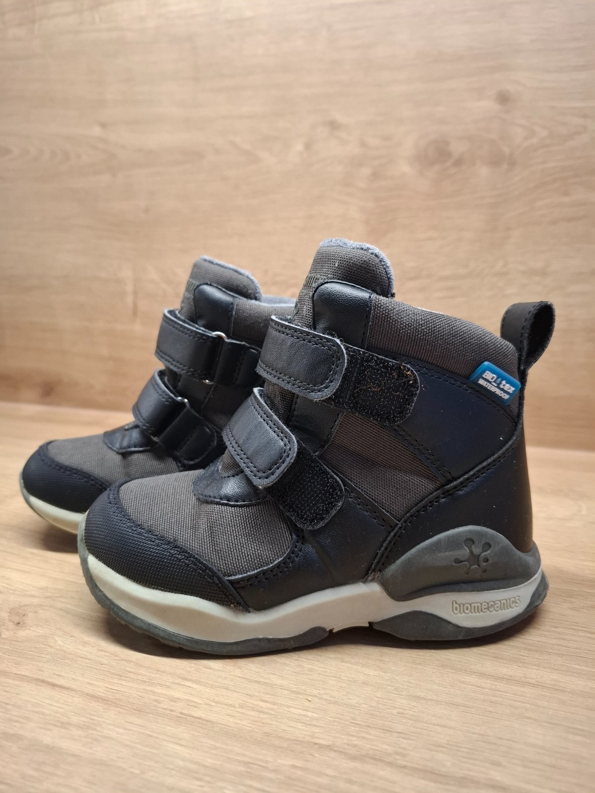Posuniem úžasné botky Biomecanics po mojom malom. Sú na nich známky opotrebovania, ale sú stále vo výbornej forme. Nepremokavé, vnútro zateplené. Vnútorná dĺžka je 17 cm.
