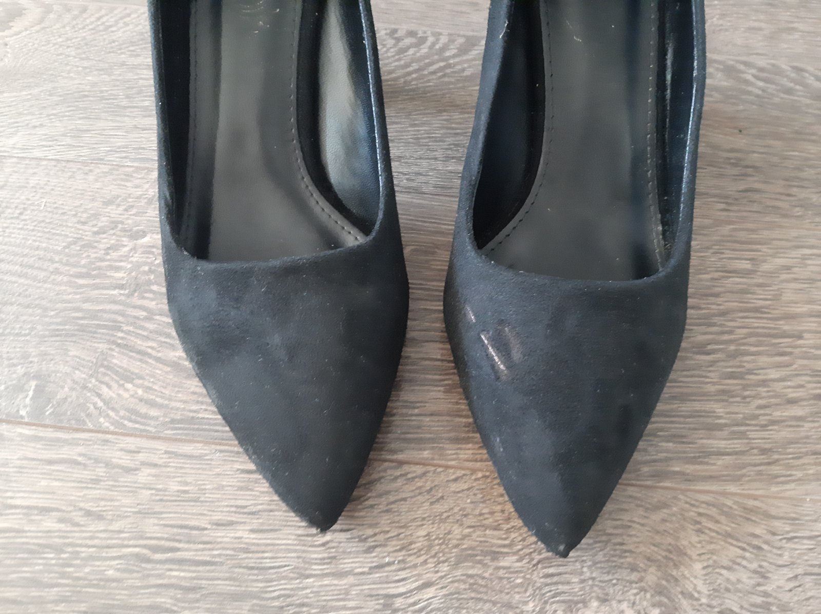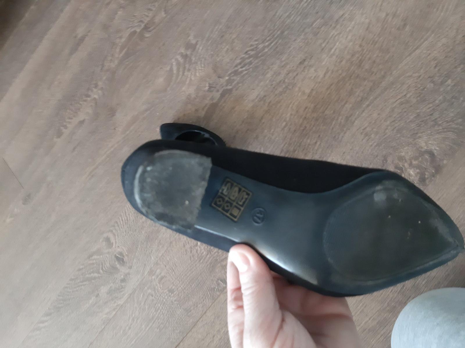 3 krat obute, po uraze clenka nemozem uz nosit opätky.Na lavej cmuha, ktoru som zatrela ciernou centro fikskou.Na fotke viediet ale v skutocnosti nie.Vnut.dlzka 24 cm.Opätok 8 cm.Cena aj s postou je 12 eur.