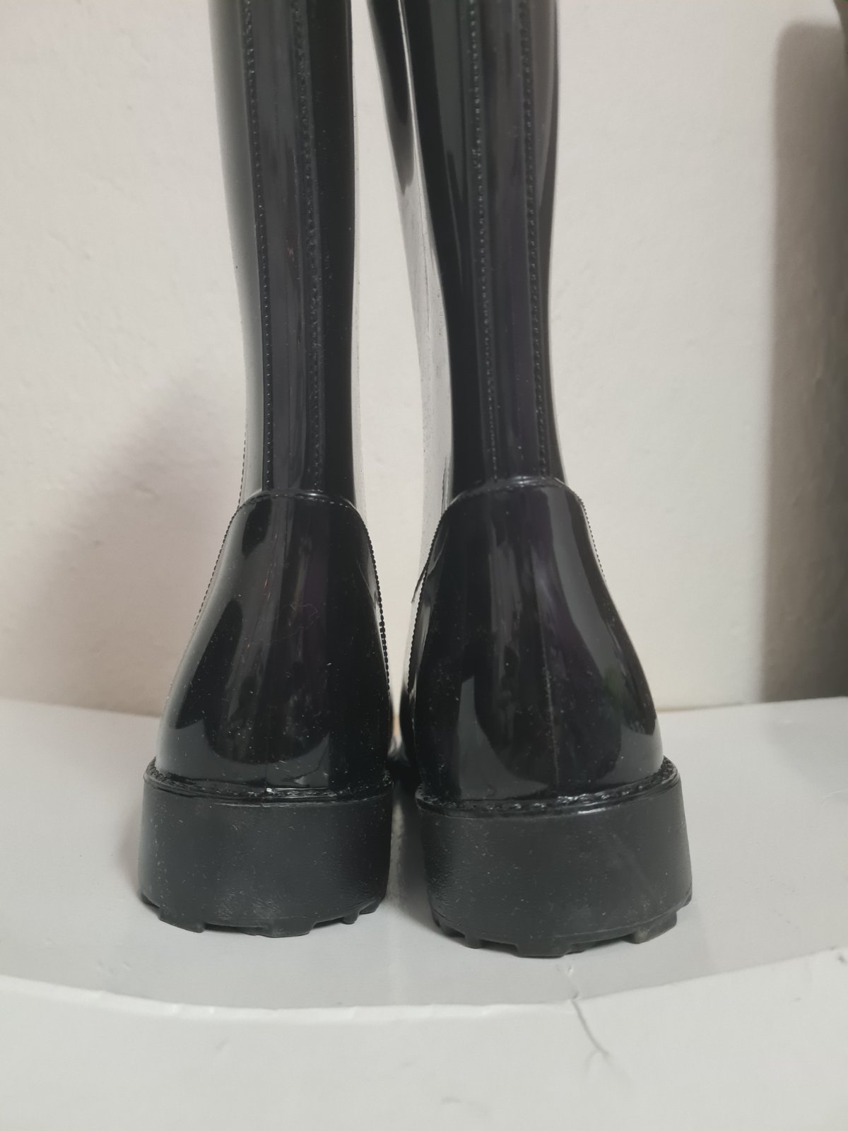 Cierne gumaky znacky Wojas. Velmi kvalitne a velmi zachovale. Vyska pod kolena. Pohodlne. Na boku decentna pekna pracka-neutralna. Hodia sa ku vsetkemu. Lahko sa kombinuju. Nosene ale ako nove, nem...