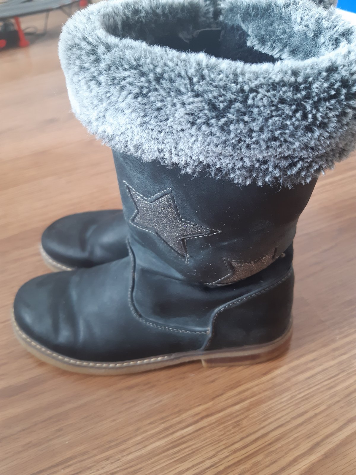 su krasne ,parkrat obute ako nove len napredu okopnute vid.foto,farba tmavo seda-metelicka,velmi teple vo vnutri kozustek,velkost uvedena 37,ale myslim ze sedia na vel36,vnutorna dlzka merana vloze...