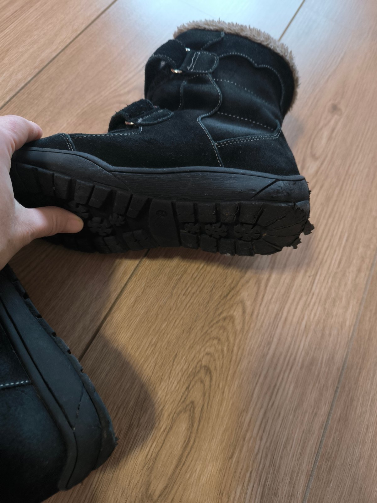 Predám zateplené zimné čižmy, kožené. Veľkosť vnútornej stieľky 23 cm. Širší strih, Málo nosené, ale mierne šuchnutá podrážka na päte /viď FOTO/. Inak vo veľmi dobrom stave,