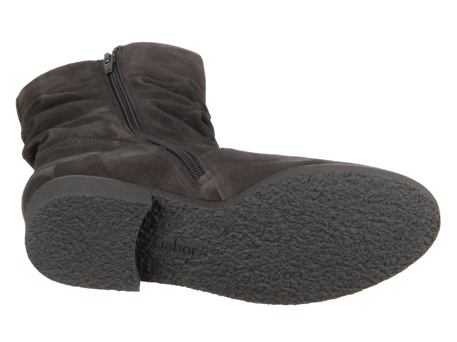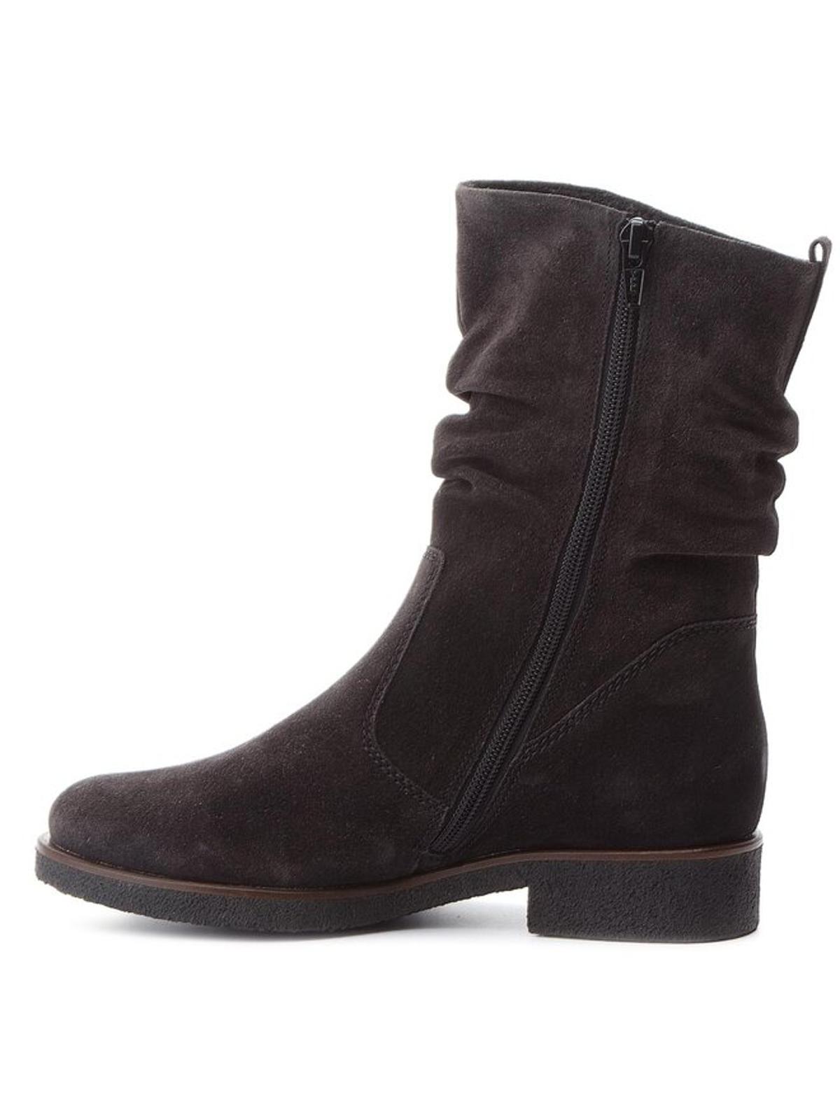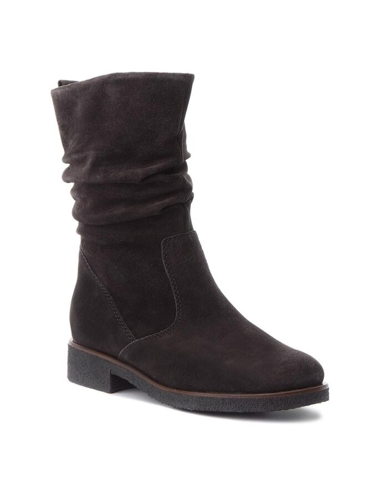Krásne dámske členkové čižmy v tmavošedej farbe s pravým zvrškom z kože Dreamvelour. Podšívka a vyberateľná stielka sú vyrobené z mäkkej textílie. Priľnavá podrážka je vyrobená z gumy,