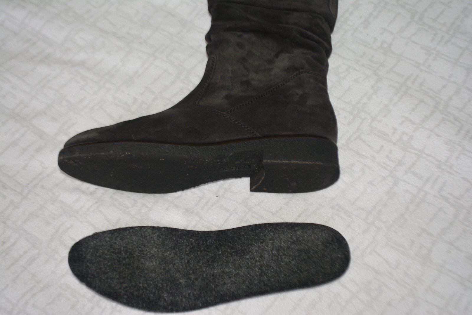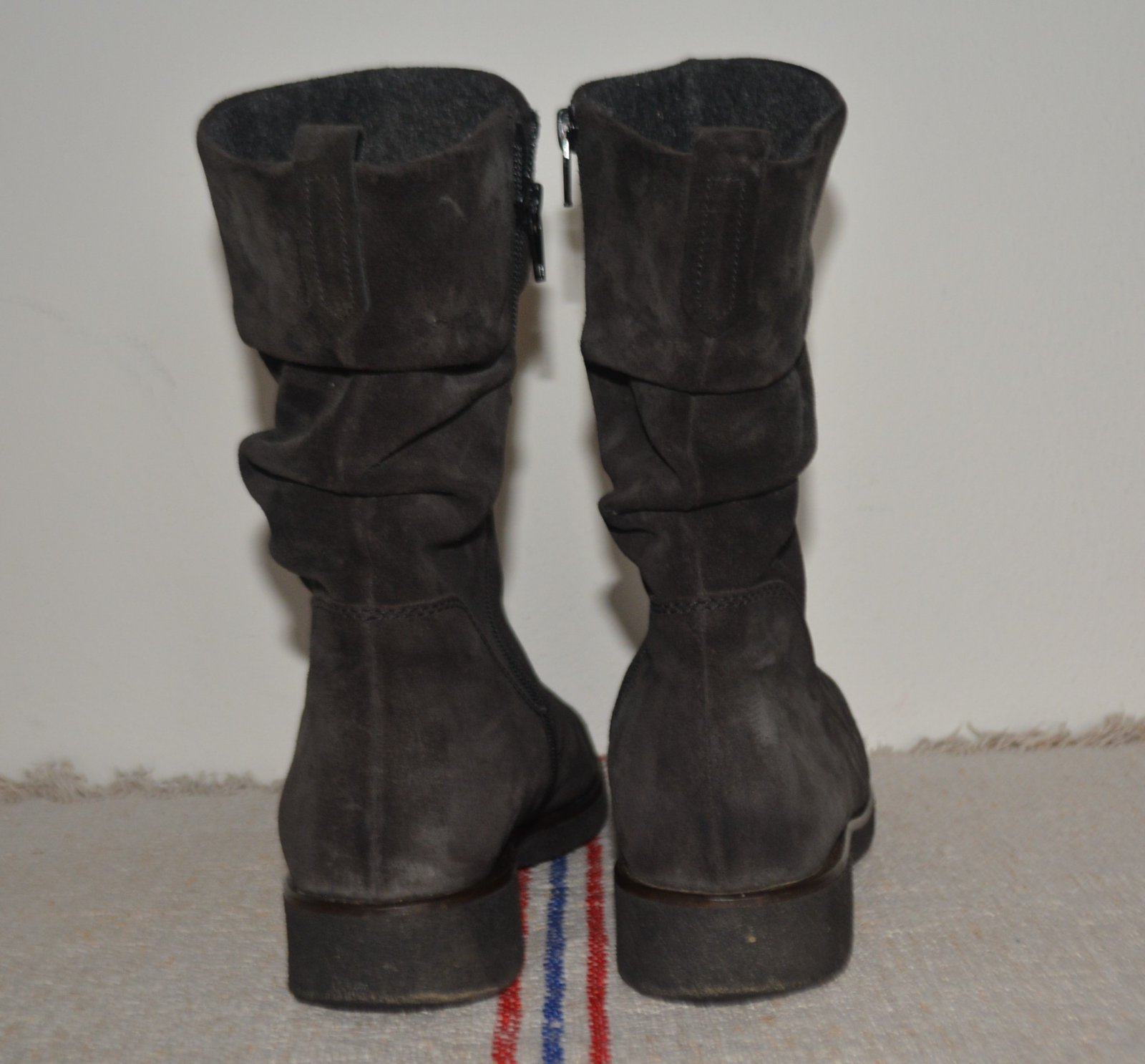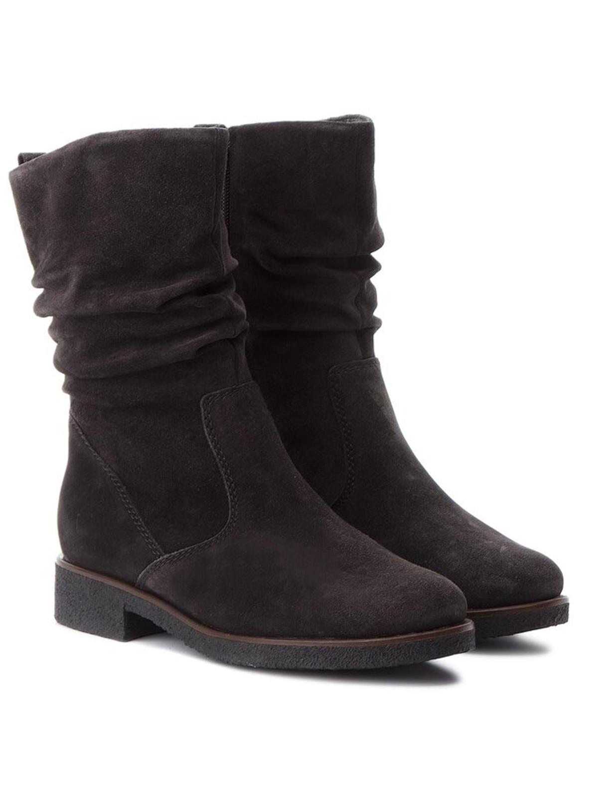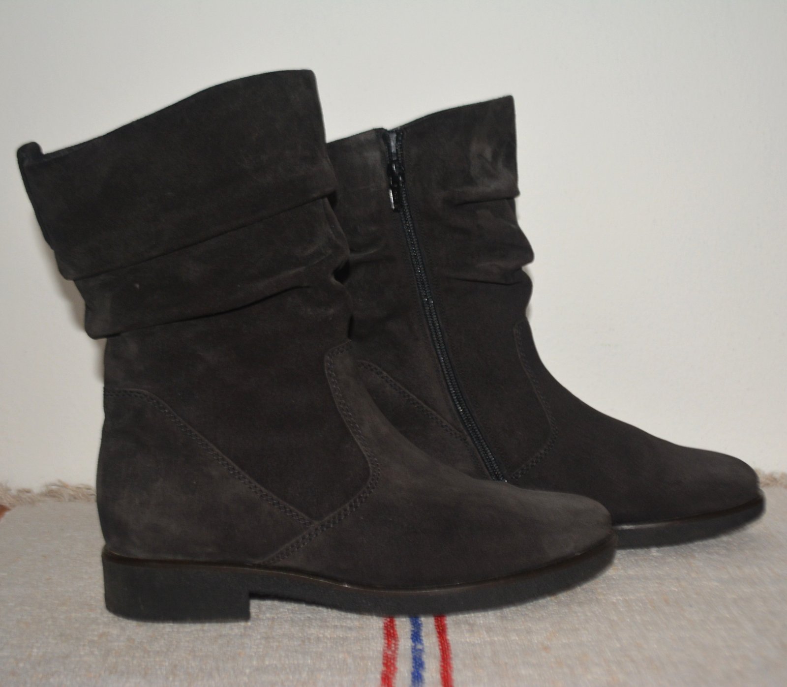 Krásne dámske členkové čižmy v tmavošedej farbe s pravým zvrškom z kože Dreamvelour. Podšívka a vyberateľná stielka sú vyrobené z mäkkej textílie. Priľnavá podrážka je vyrobená z gumy,