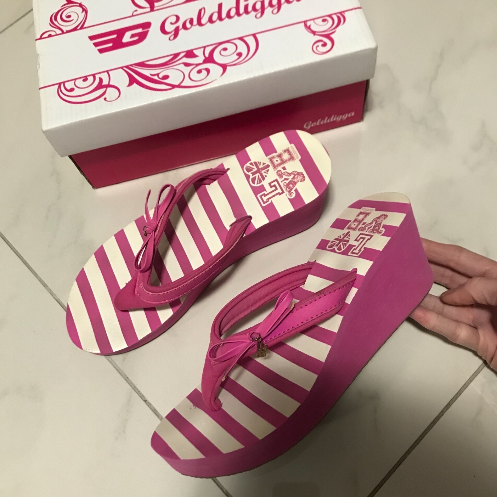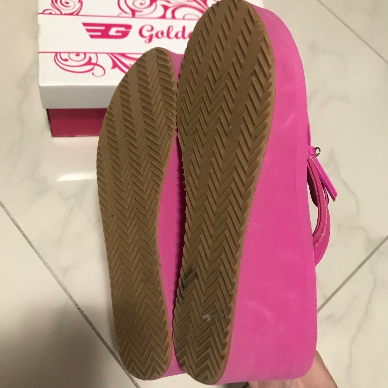 Predám žabky na platforme zn. Golddigga. Veľmi pohodlné, výška zadnej platformy je 7 cm.