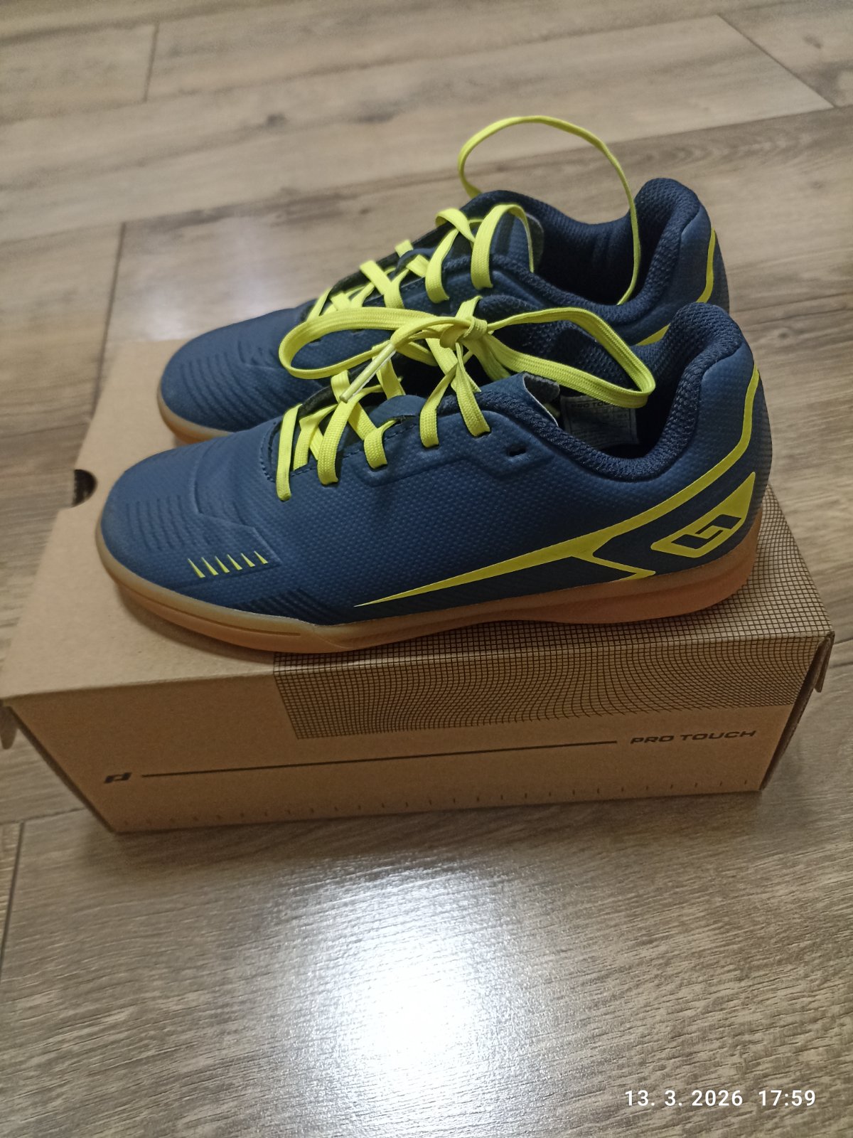 Tenisky-halovky..boli používane.Sú stále plne funkčné.Akurat na pate z vnútra vydraté.Inak v zachovalom stave.Nemajú ziadne iné poškodenia.