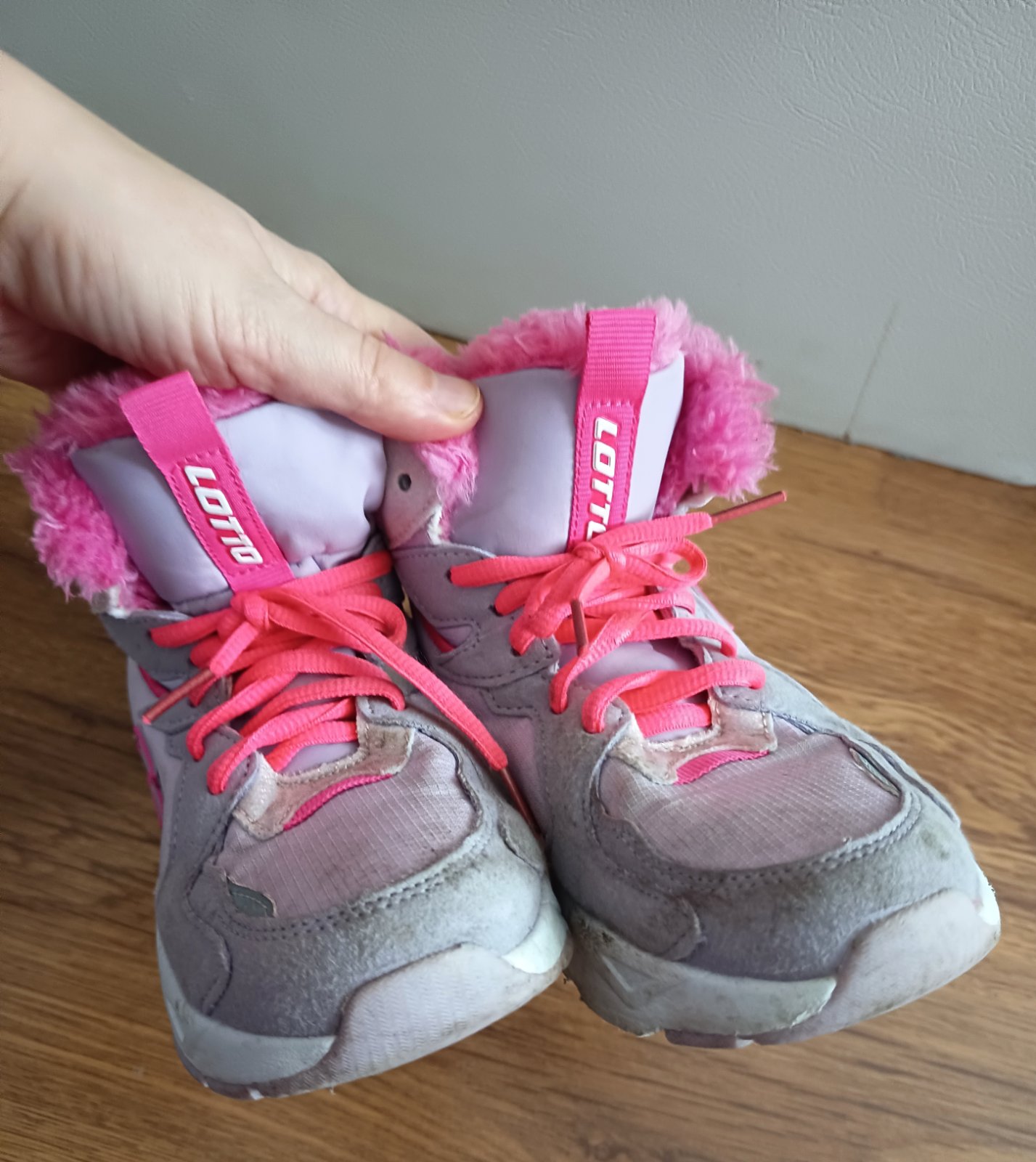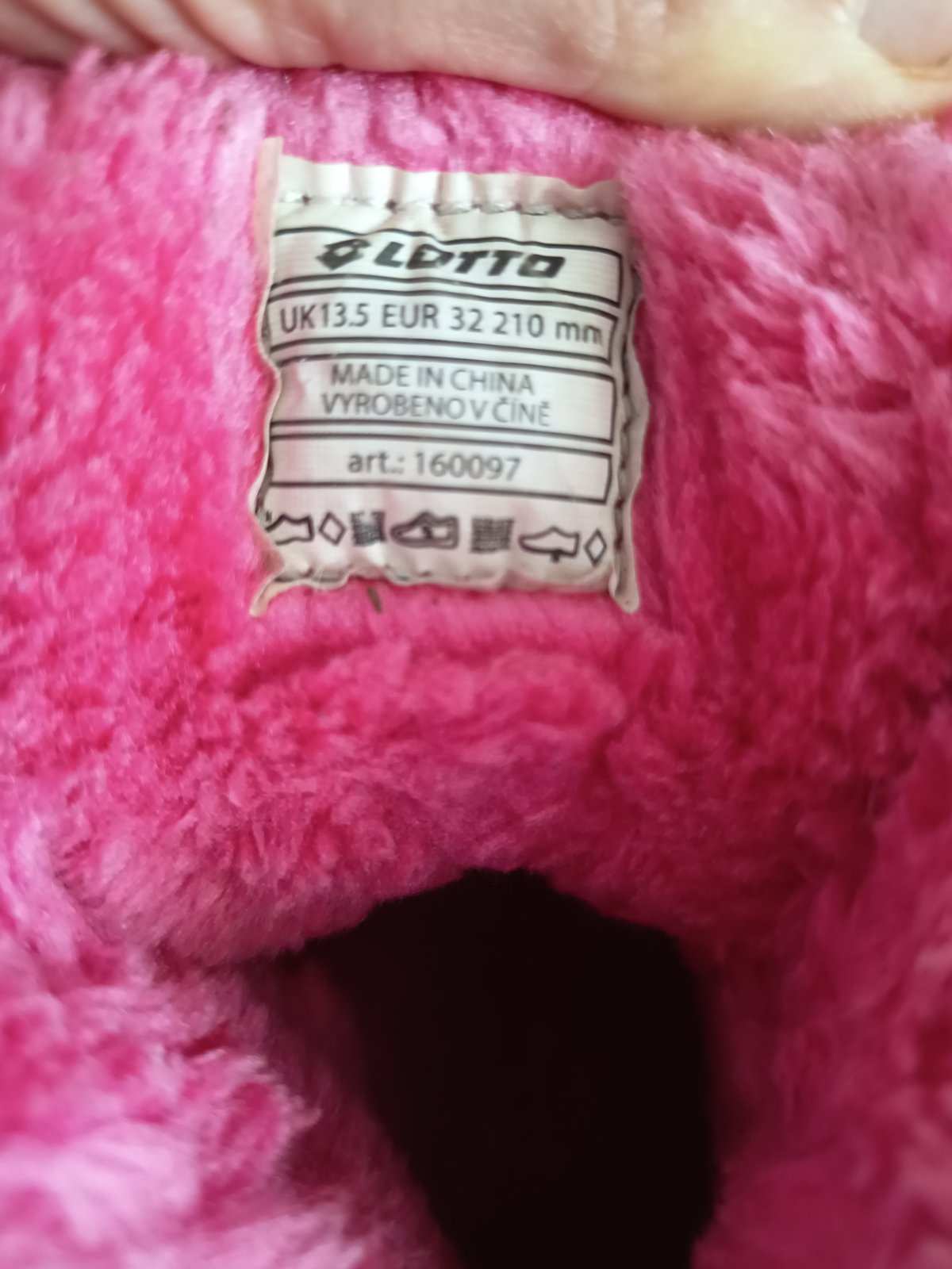 Posúvame jednu zimu nosené uuuuuzasné čižmičky zn.Lotto, kupované koncom r.2023 v Sportisime. Vnútornú dĺžku som namerala 20 cm. Veľkosť reálne zodpovedá v.32 a sú vhodne aj pre nožičky so širším n...